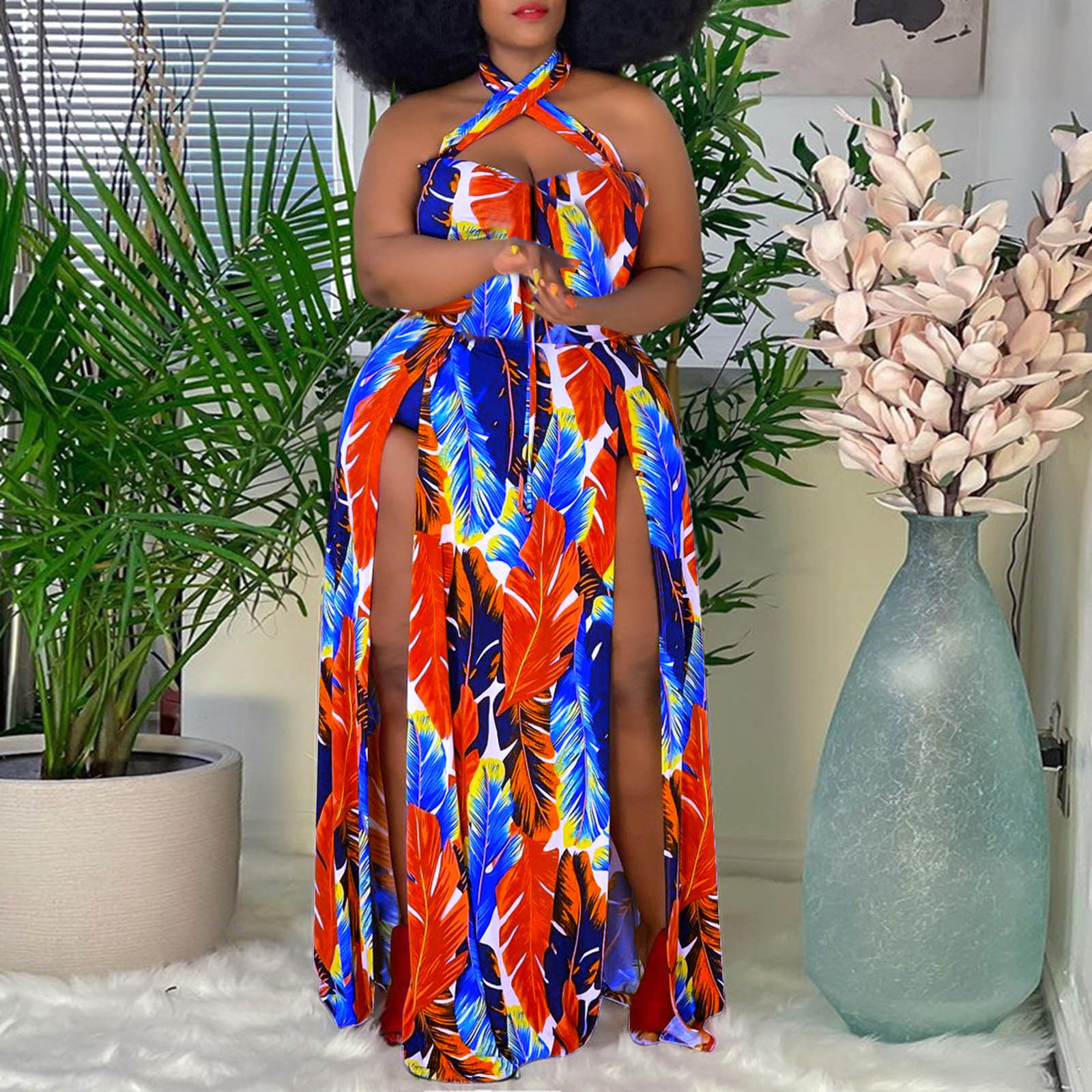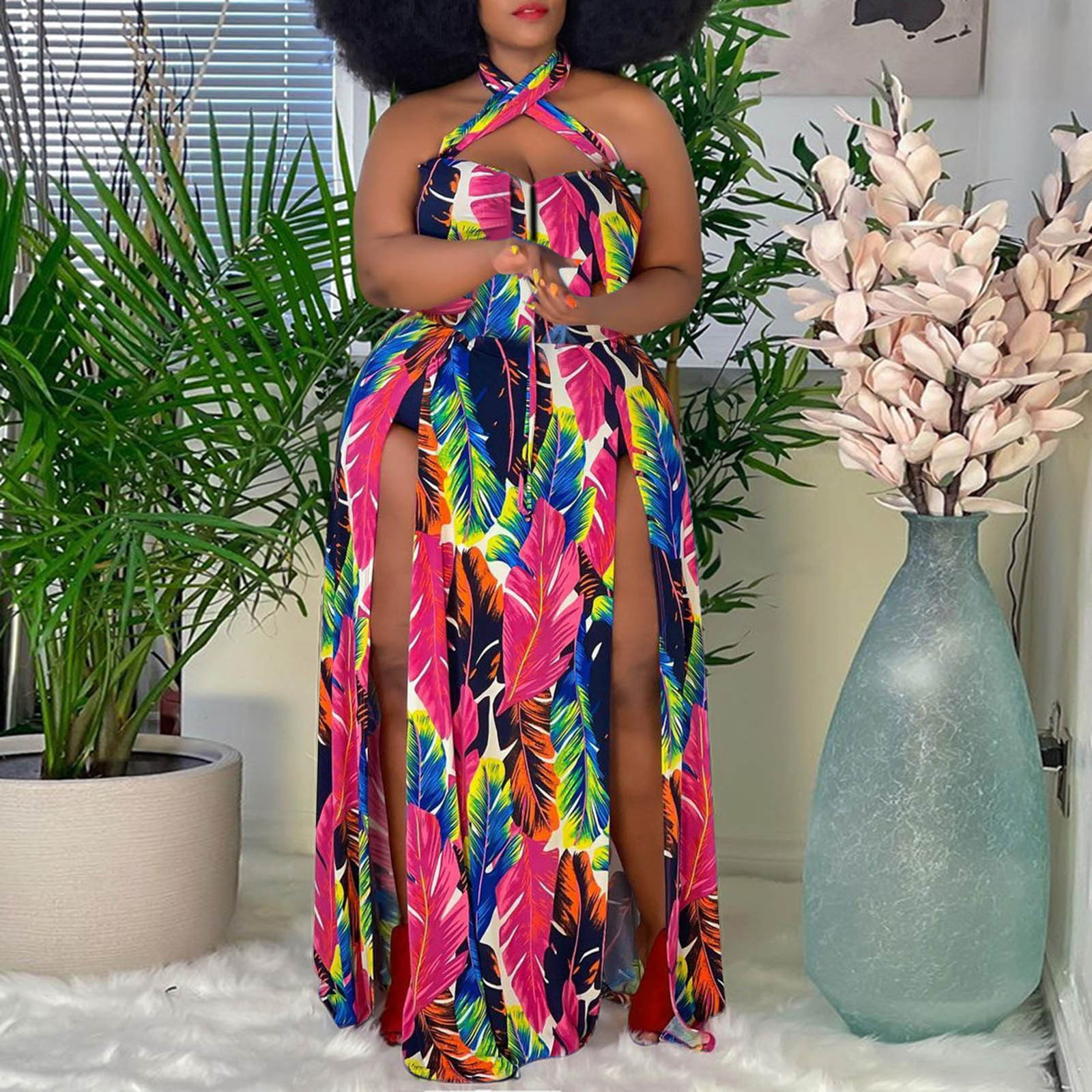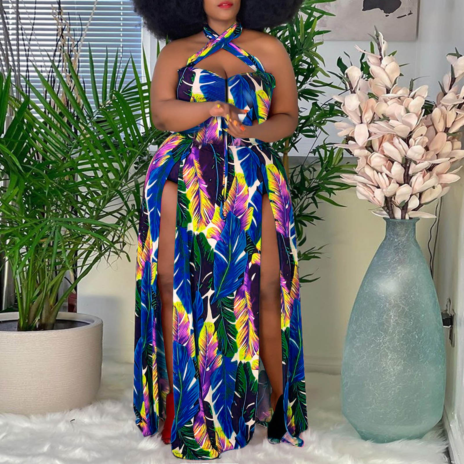 Женская сексуальная одежда Холтер шеи цветочный принт Сплит вечерние Макси платье