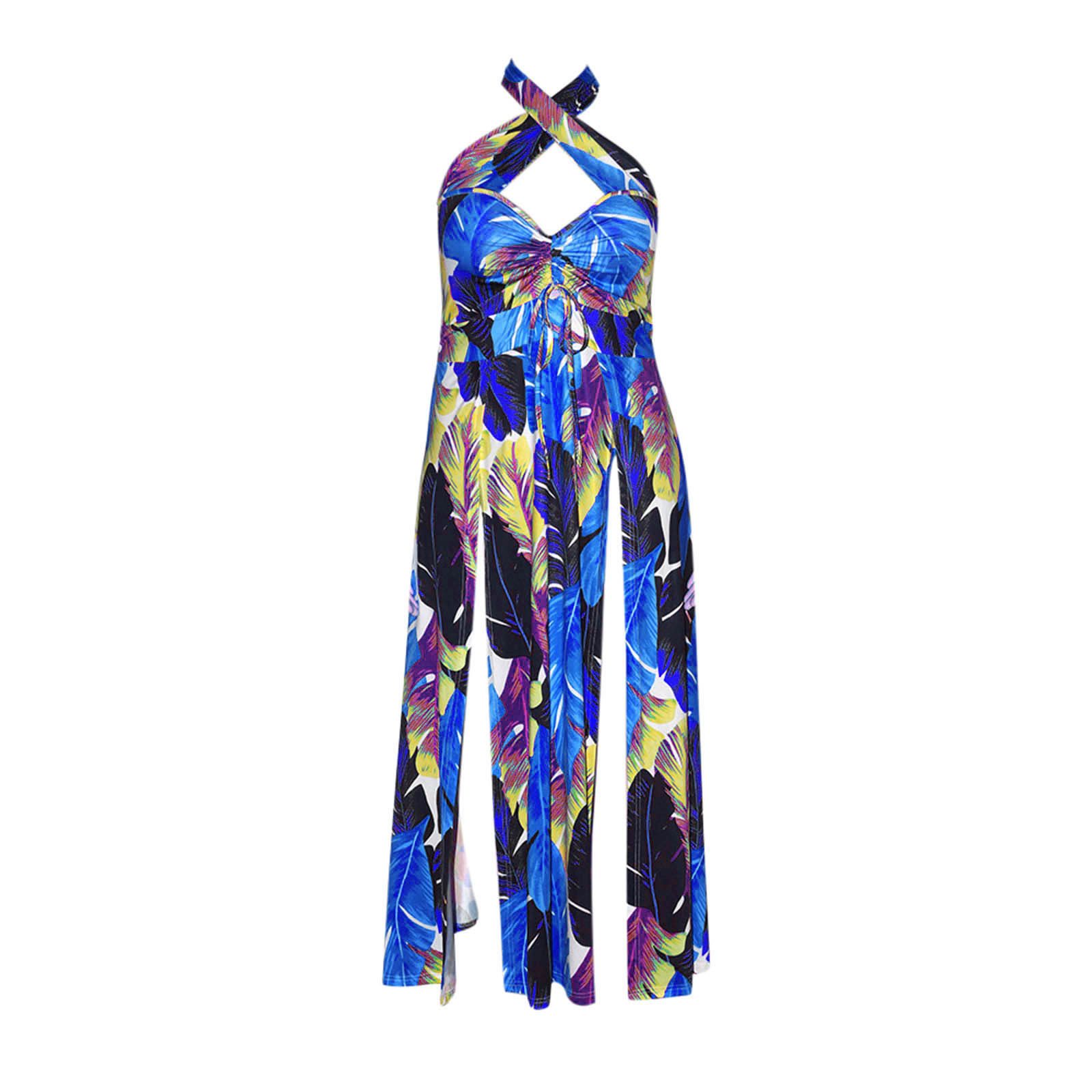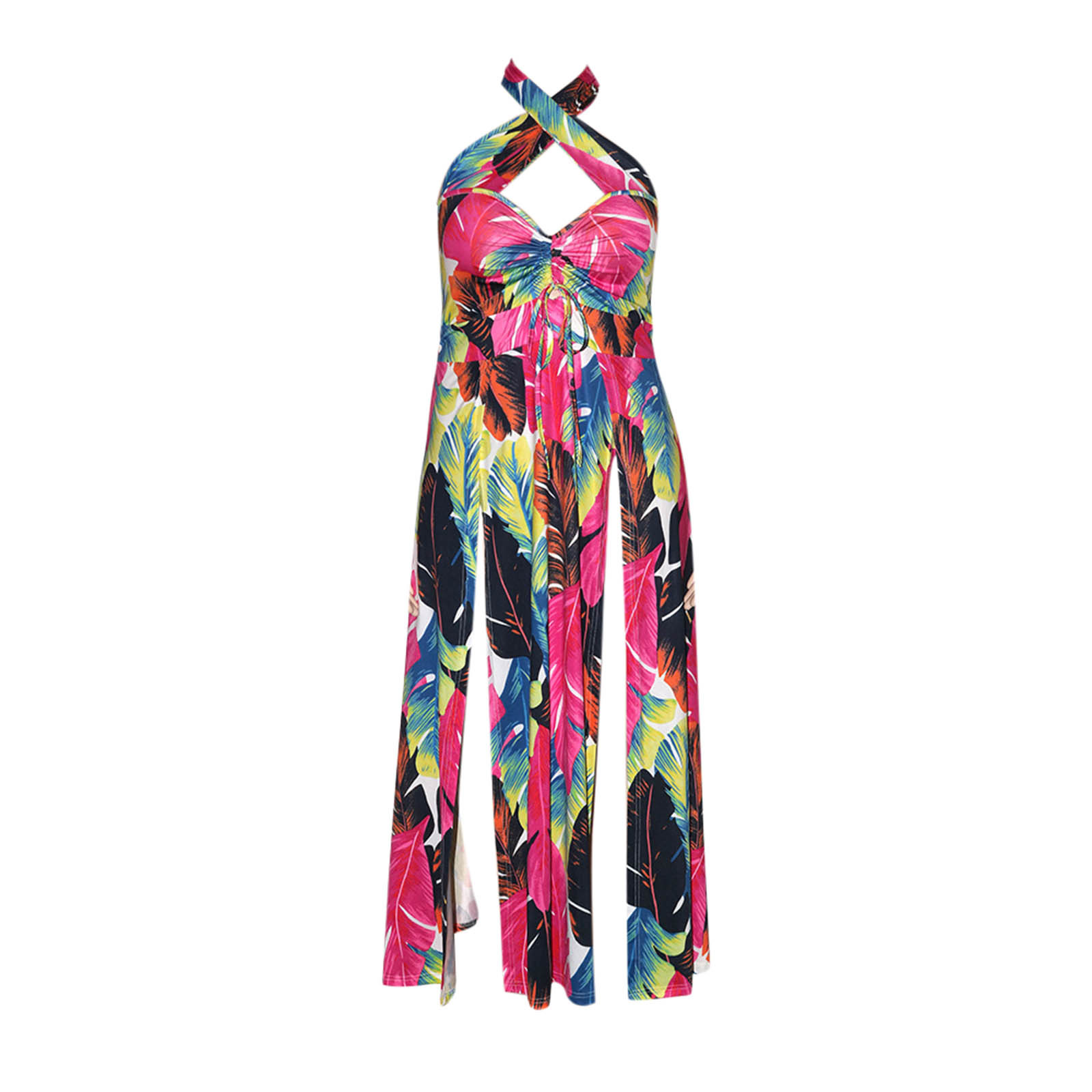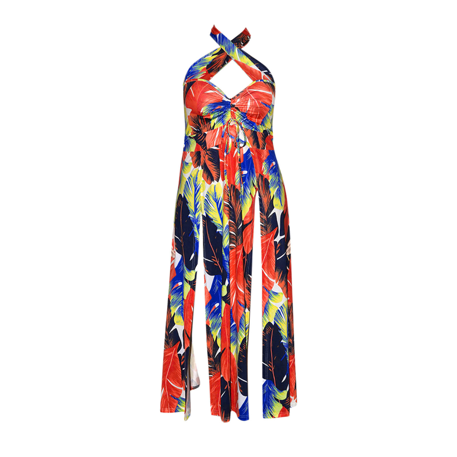 Женская сексуальная одежда Холтер шеи цветочный принт Сплит вечерние Макси платье
