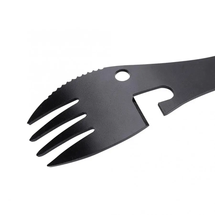 Попробуйте эту многофункциональную ложку из нержавеющей стали во время кемпинга или пешего туризма. В комплект входят ложка, вилка, открывалка для бутылок, консервный нож и пилообразный резак. Легко носить с собой и полностью переносить, отличный аксессуар для путешествий на открытом воздухе. Наш продукт-ваш лучший выбор!