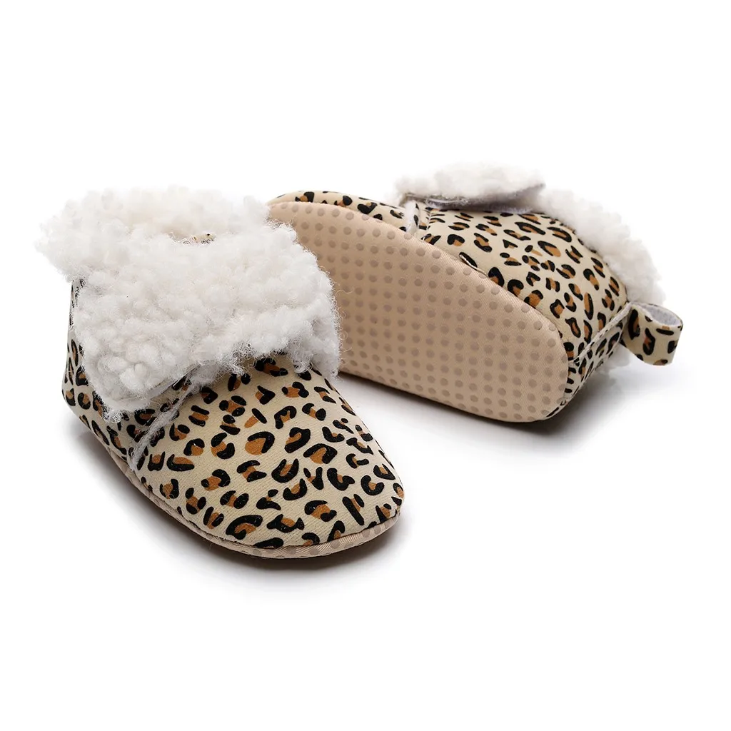 Зимние теплые ботиночки с леопардовым принтом для маленьких мальчиков и девочек
