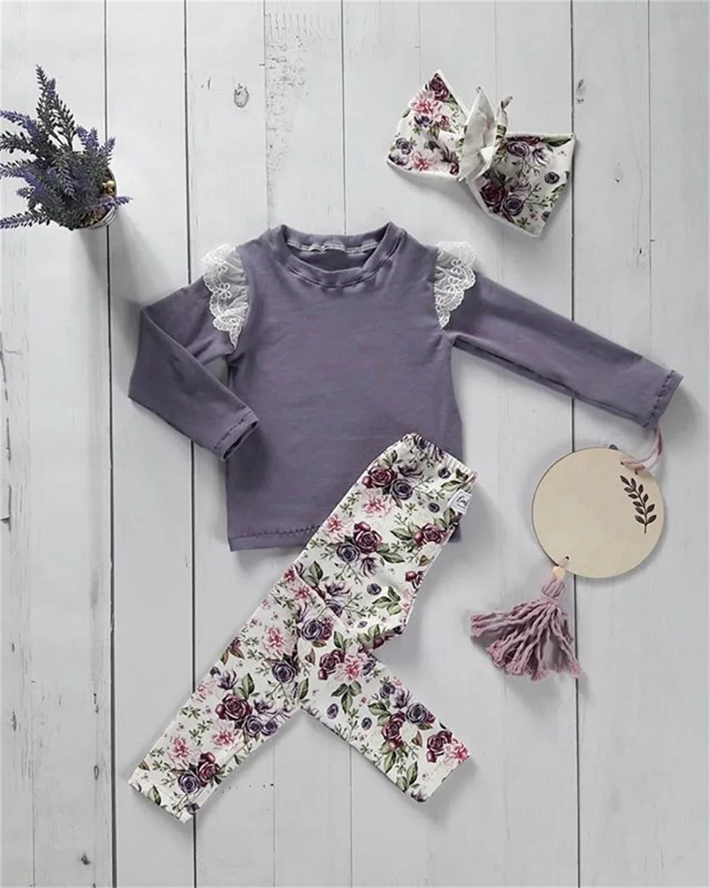 Осенний стильный комплект детской одежды Kaiya Angel с оборками и длинным рукавом