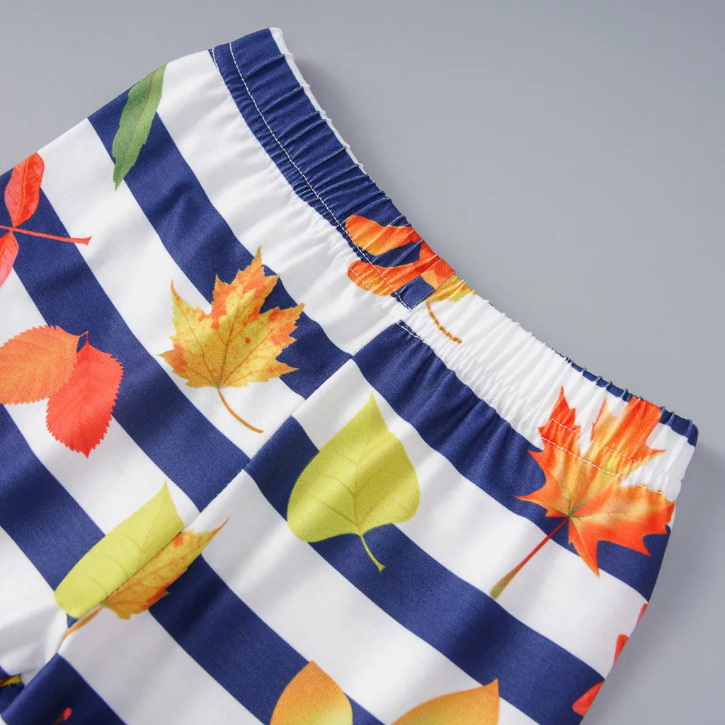 Штаны в полоску с принтом «перья на День Благодарения» для маленьких мальчиков и девочек