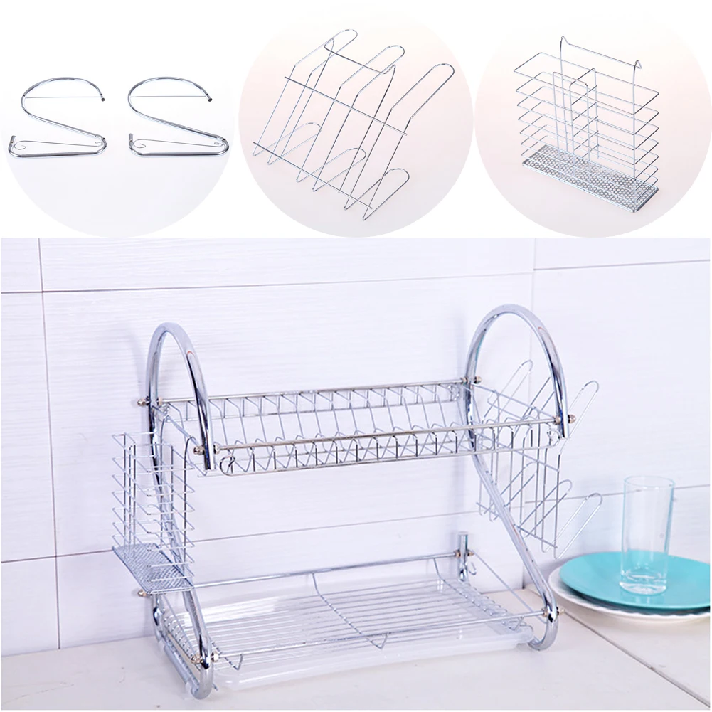 Модный дизайн, 100% новый, высокое качество! Описание продукта: Стойка для посуды является необходимым кухонным инструментом, чтобы ваша кухня была аккуратной и чистой. Эта тарелка из нержавеющей стали довольно удобна и помогает блюдам сушить быстрее, чем обычная ткань коврик для сушки. Soild структура и двухэтажный дизайн более стабильны и экономия пространства. Особенности -Цвет: серебро -Материал: нержавеющая сталь -Размеры: как показано на рисунке -Новый дизайн не занимает много места. -Съемная пластиковая сушилка. -Двухэтажный дизайн может вместить много посуды, префект, чтобы организовать очки и другие мелкие посуда. -Держать вашу кухню в аккуратном и чистом состоянии. -Легко собрать Посылка включает в себя:1 * Пластиковая сушилка, 1 * подставка для кружки, 1 * держатель для столовых приборов