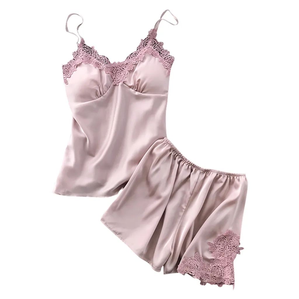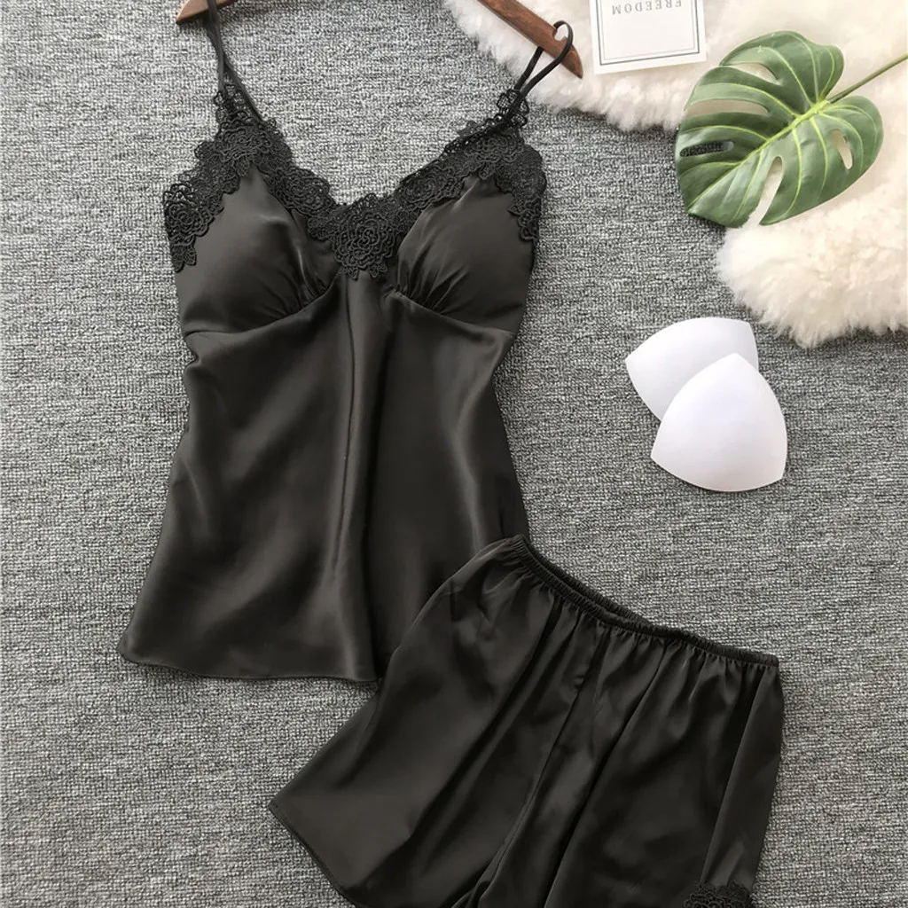 Женское сексуальное атласное нижнее белье, кружевная ночная рубашка, комплект нижнего белья