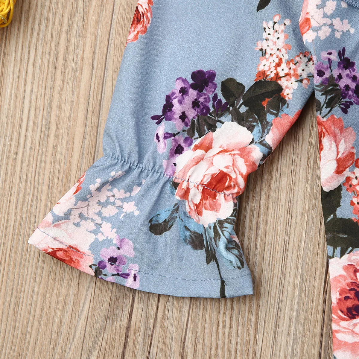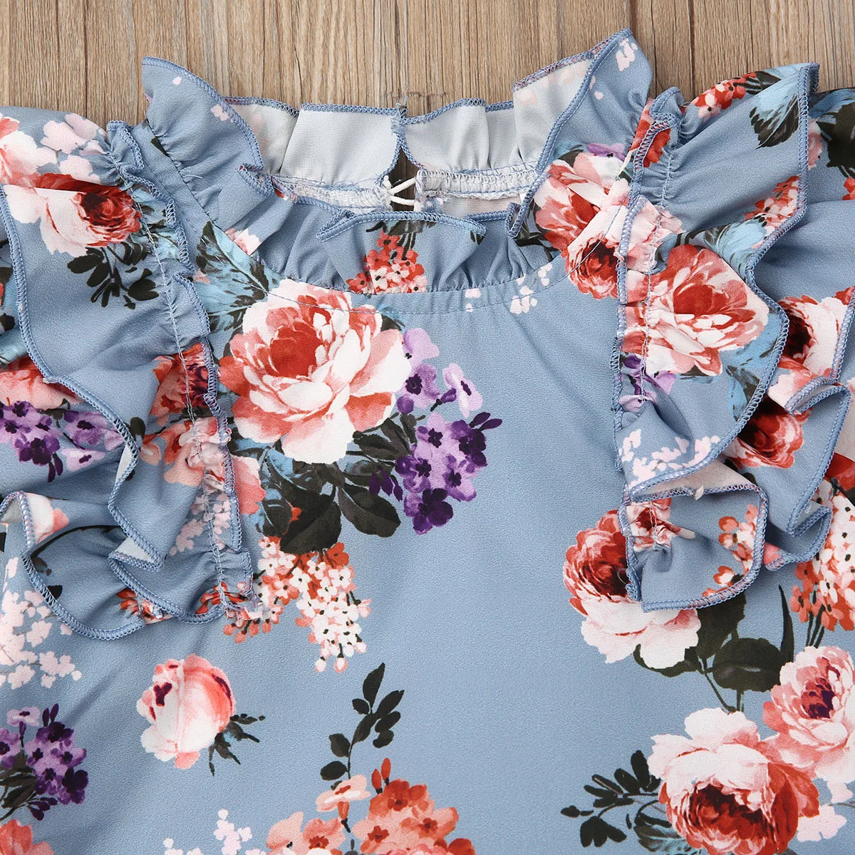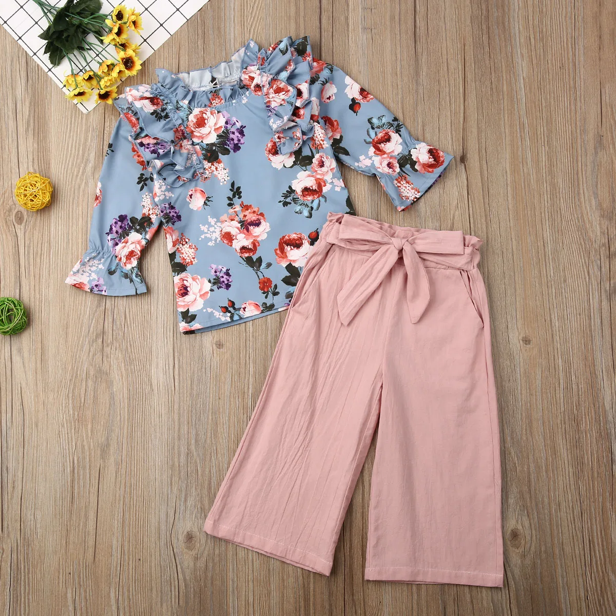 Добро пожаловать Высокое качество и абсолютно новый 100% Основной цвет: как на картинке Новинка в моде Материал: Смешанный хлопок Просим перепроверять размеры детей, рост и полноту по размерной таблице перед покупкой/подачей заявки. Спасибо за понимание.Посылка включает в себя:1 топ с цветочным принтом и рукавами-крылышками +1xБрюки для девочек Размеры таблицей: