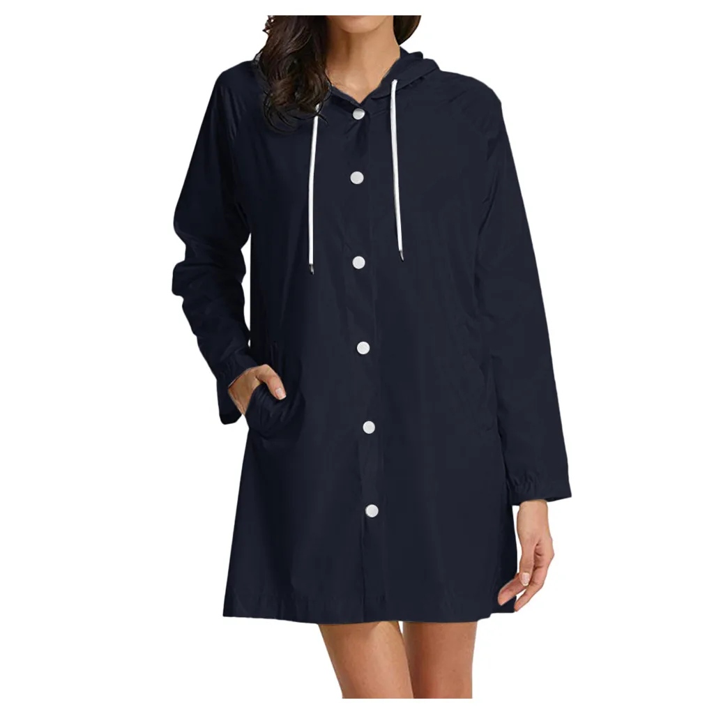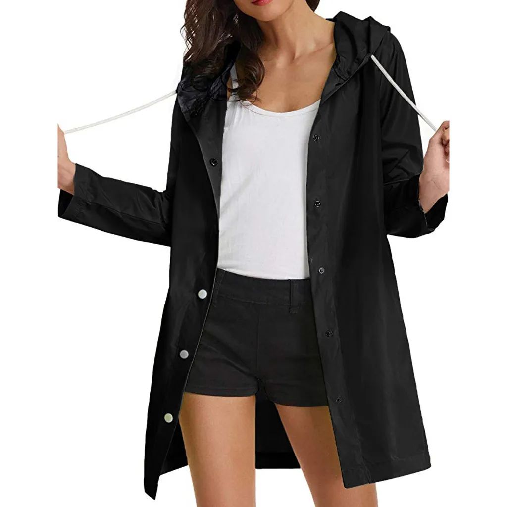 Женская однотонная непромокаемая куртка на открытом воздухе плюс размер Водонепроницаемая с капюшоном ветрозащитная Свободная куртка