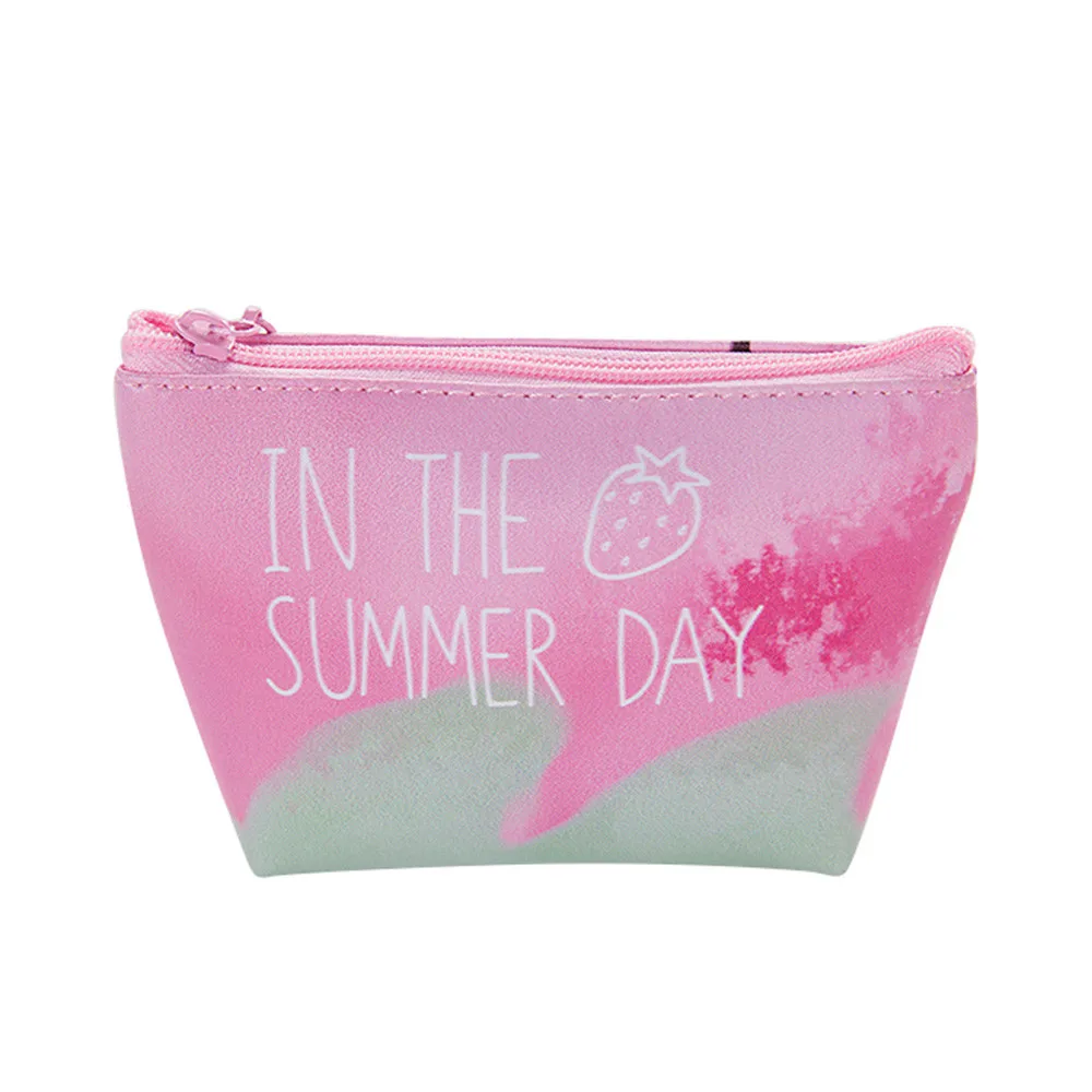 Женский розовый кошелек на молнии, модный кошелек с клубничным принтом для монет, кошельки для карт и наличных