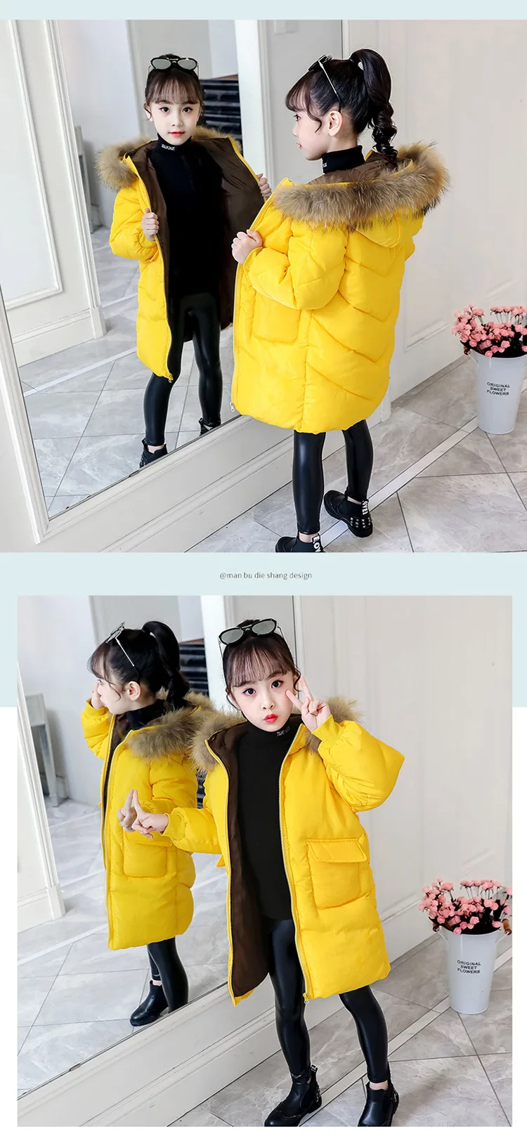 Новинка 2019 куртки средней длины с капюшоном для девочек парки детская зимняя