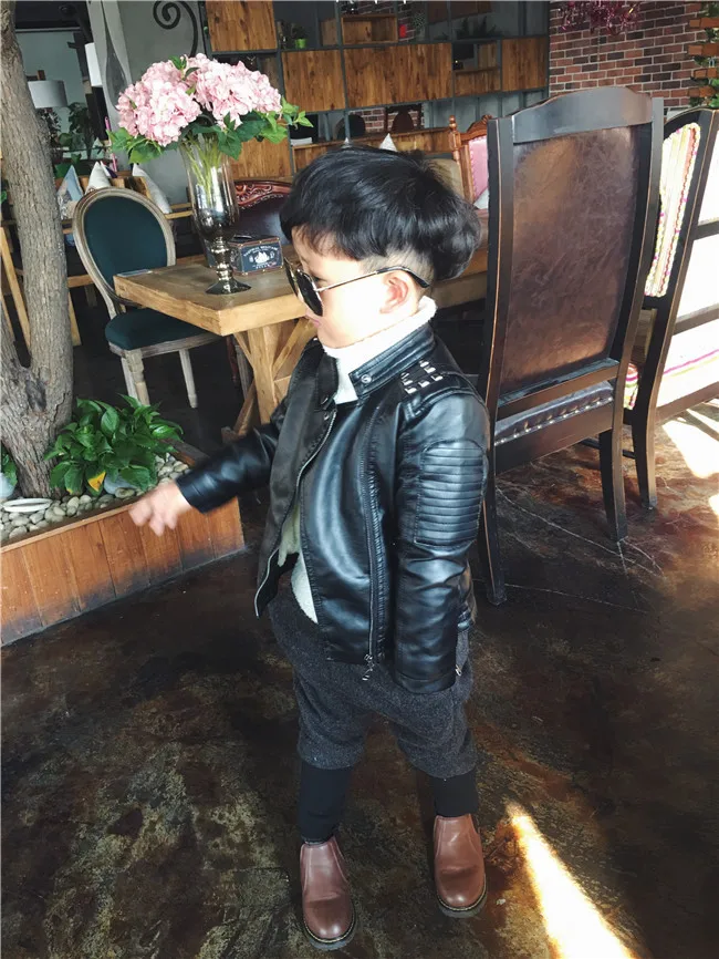 Куртка для мальчиков, модная кожаная куртка, Осень-зима 2019, новая верхняя одежда для мальчиков с заклепками и длинным рукавом, бархатная куртка на молнии