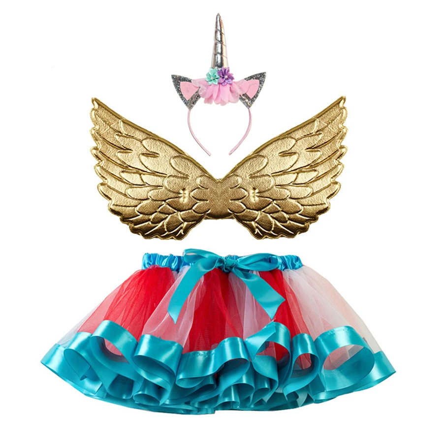 Kids Christmas Clothes New Year Girls Unicorn Costume for Girl Tutu Dress Wing Headband Girl Children's Party Dress Set