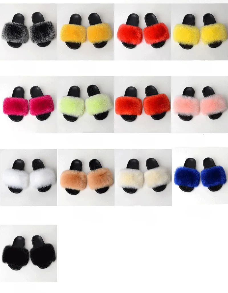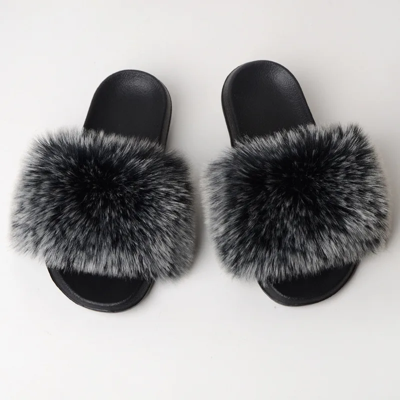 Женские меховые шлепанцы; Тапочки из искусственного меха; Милые плюшевые домашние тапочки; Зимние шлепанцы с лисьим мехом; Женские сандалии; Меховая обувь; Пляжные шлепанцы на плоской подошве