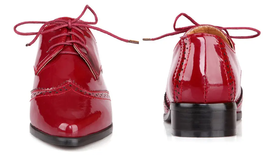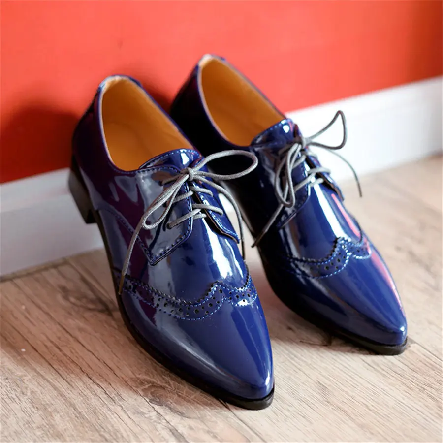 Женские броги на шнуровке в британском стиле на низком квадратном каблуке