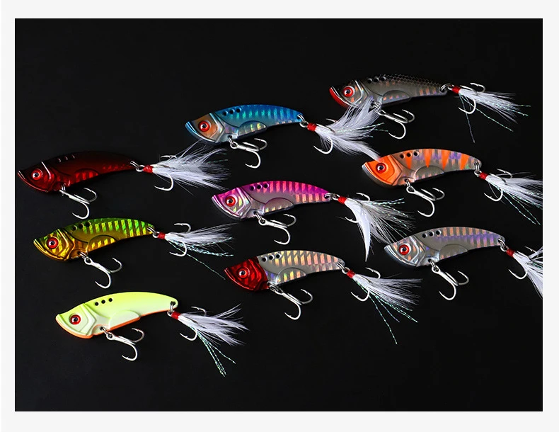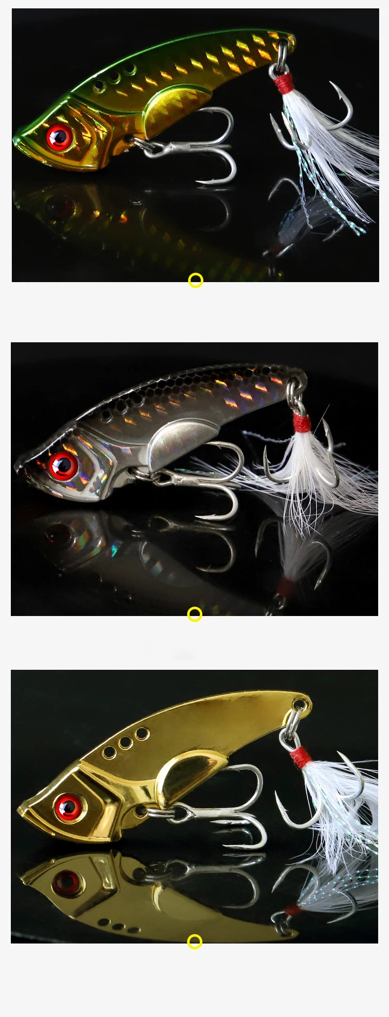 11 Цвета 10/15/20g 3D блесна металлическая лезвие приманки и головной повязкой с пером опускается на дно вибрации приманки искусственные Vibe для бас судак Рыбалка