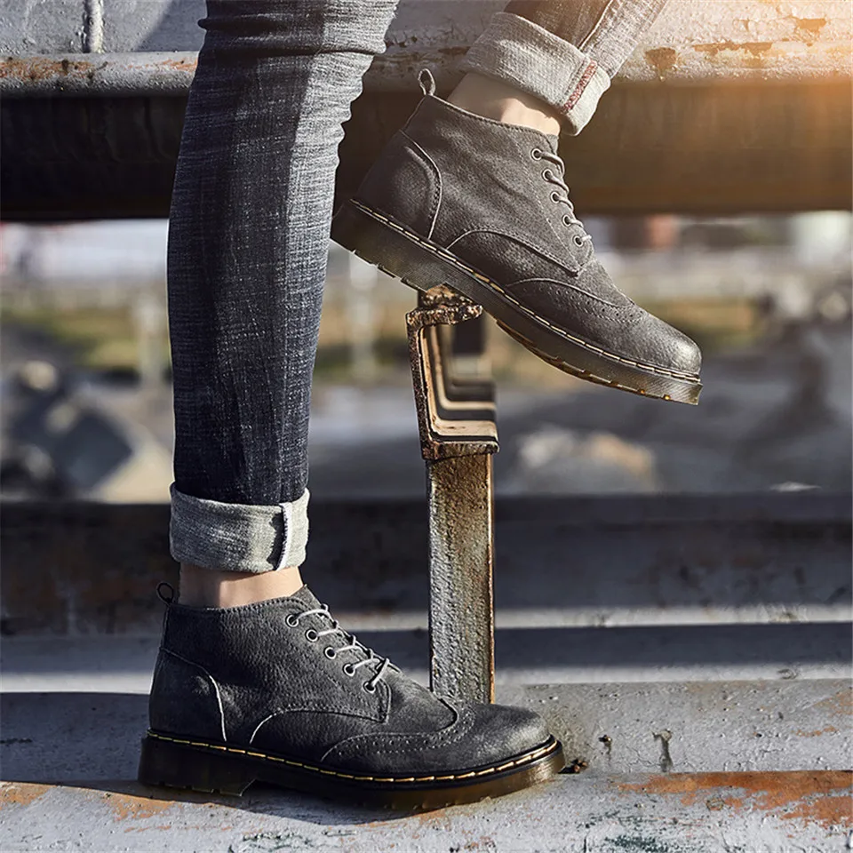 Мужские ботинки повседневные зимние до середины икры из натуральной кожи