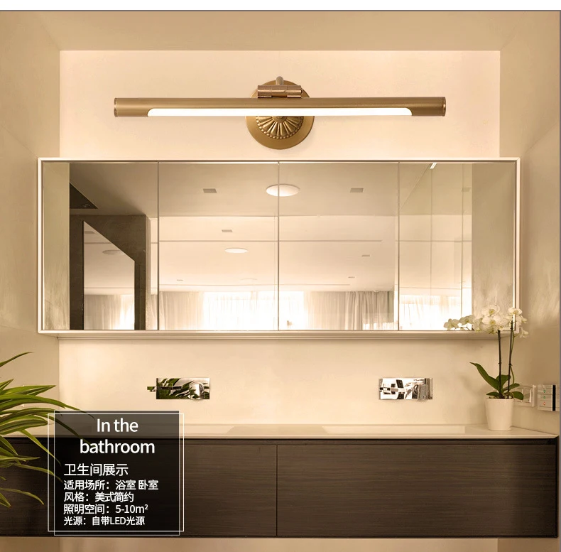 Американский медный светодиодный зеркальный светильник в стиле ретро освещение