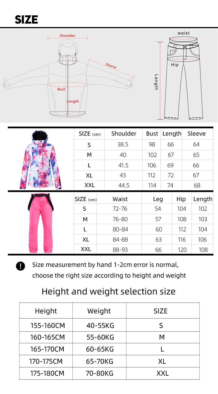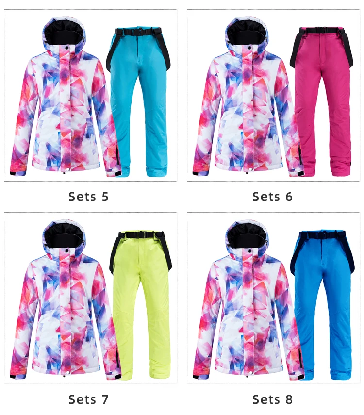 Цветной зимний костюм женский комплект одежды для сноуборда зимний 10K водонепроницаемый утолщенный Костюм Уличная зимняя куртка + лыжные нагрудники Брюки