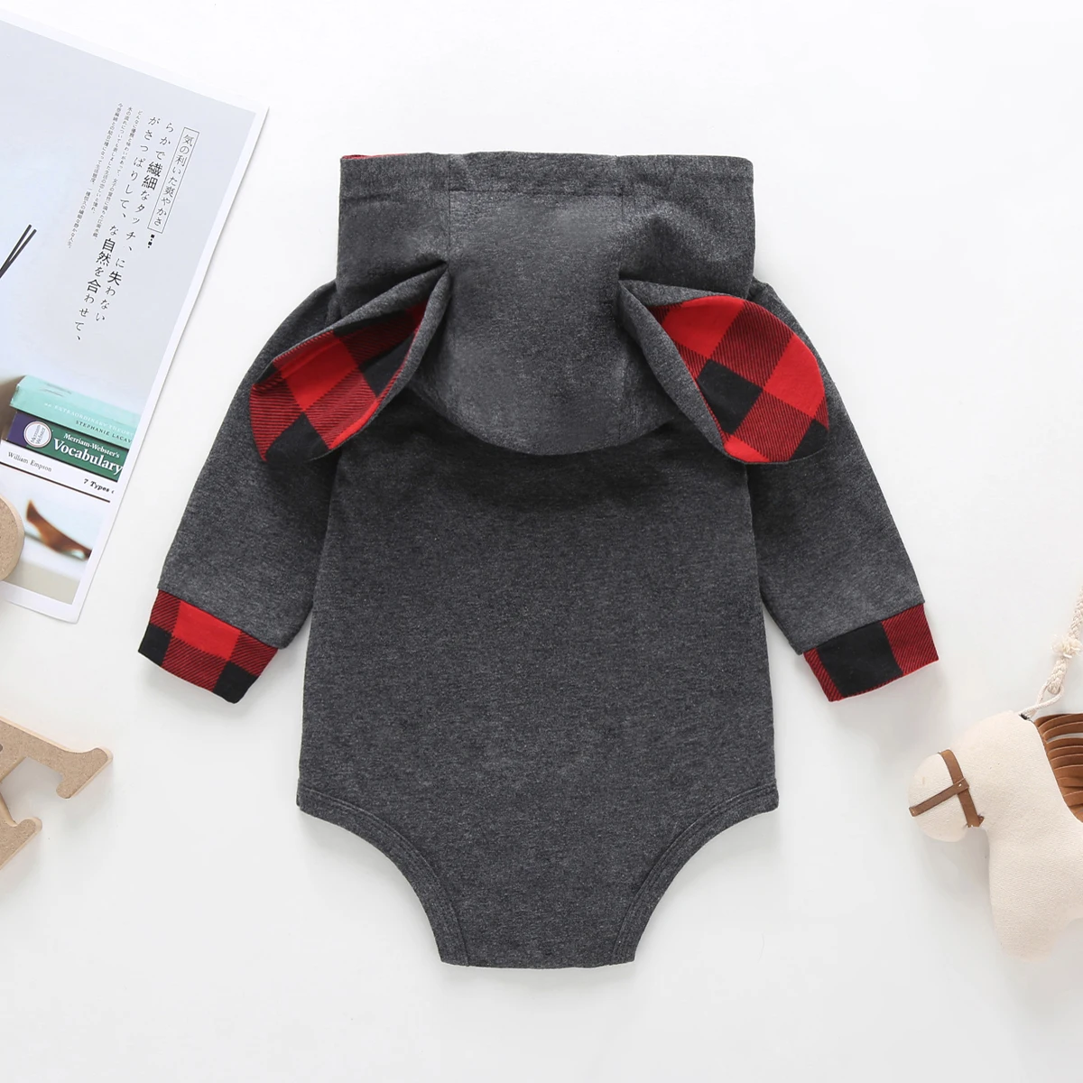 Одежда для малышей, темно-серая толстовка с капюшоном для мальчиков и девочек, комбинезон в клетку