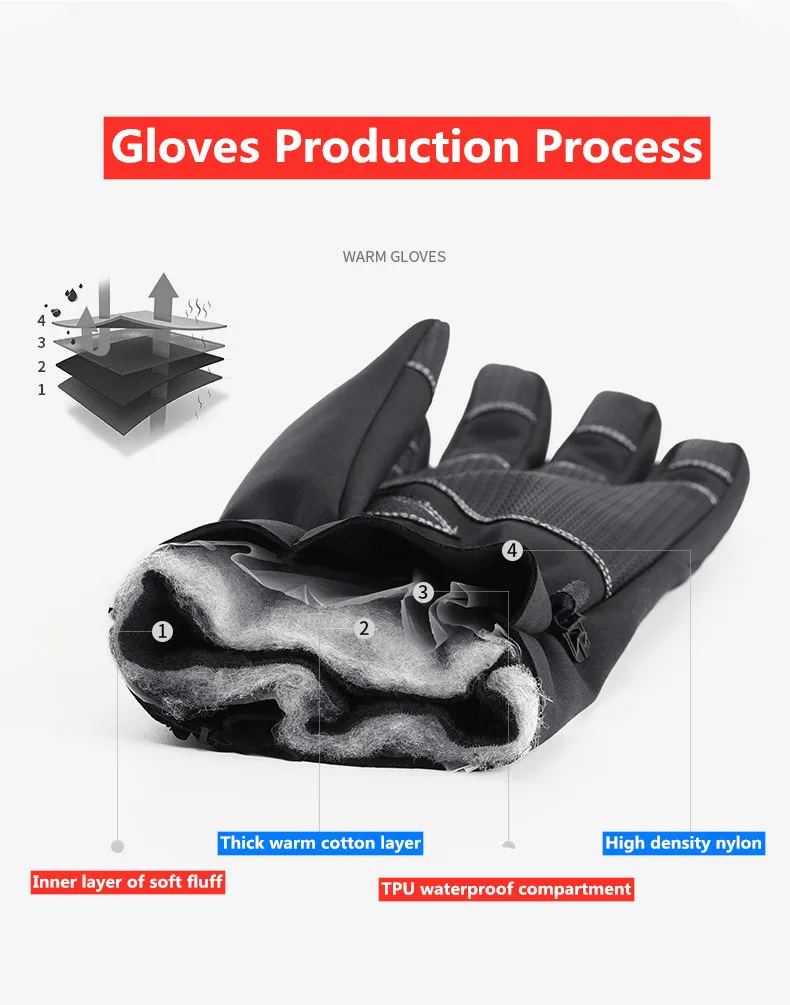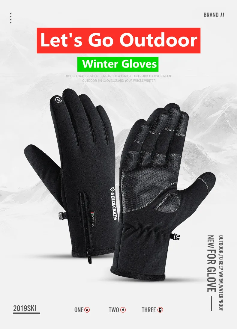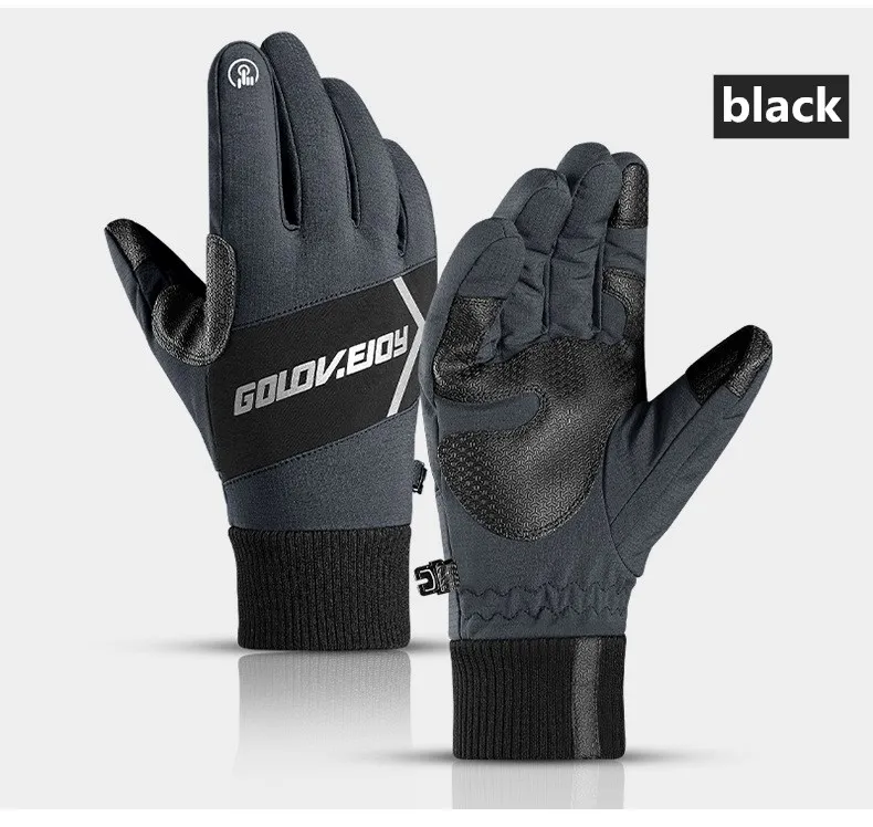 Водонепроницаемые лыжные перчатки зимние на молнии с сенсорным экраном мужские и женские теплые велосипедные перчатки для рыбалки и вождения плюс бархат черный M L XL