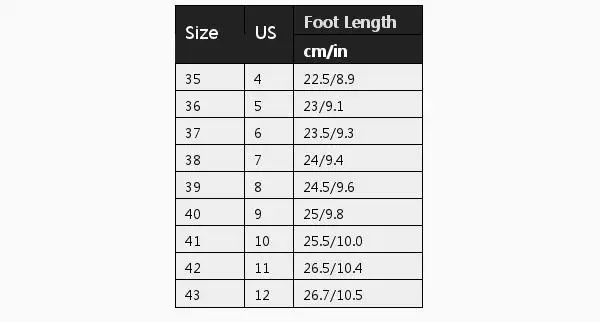 | Размеры::35 | Свяжитесь с нами::4 | Длина стопы (см/дюйм)::22,5/8,9 |