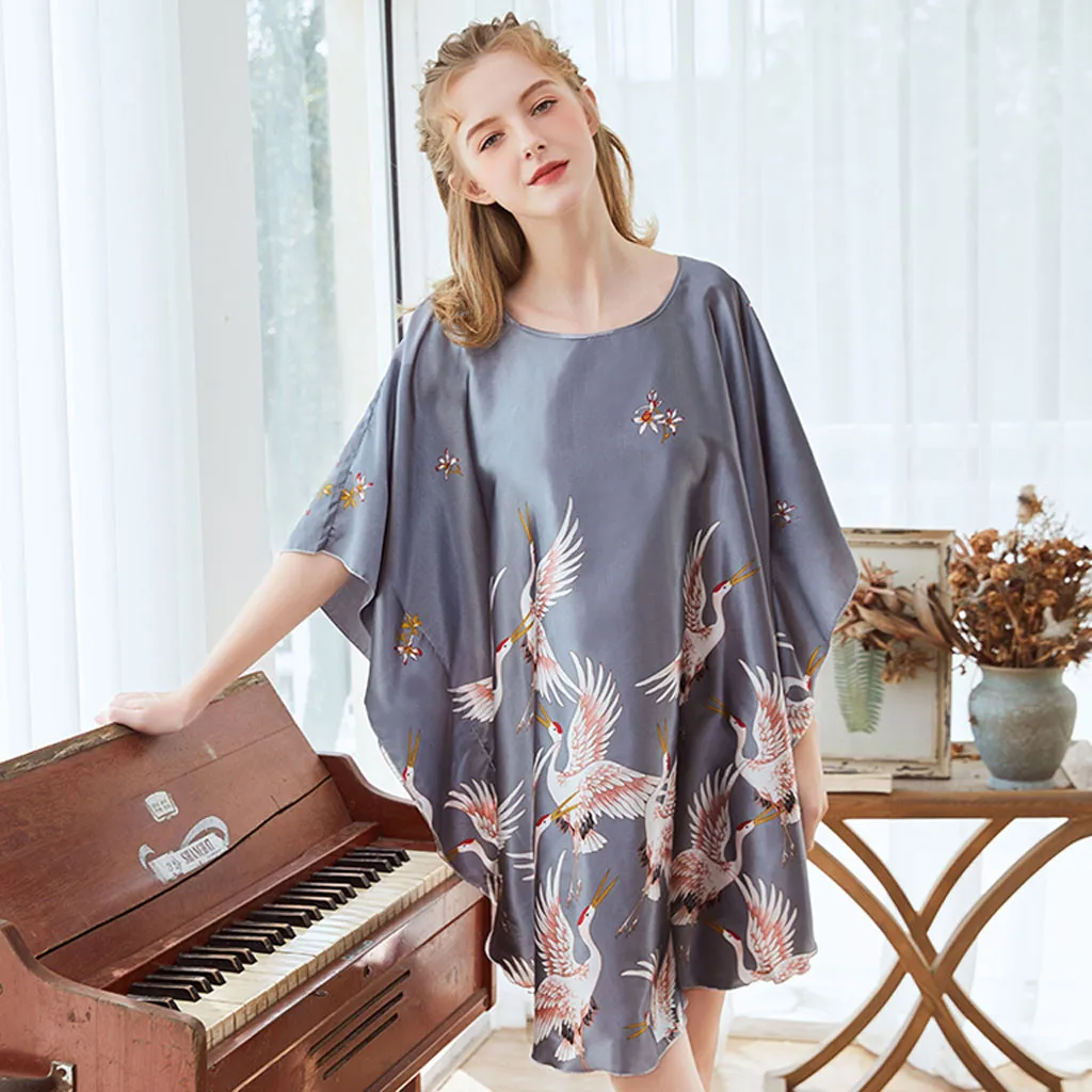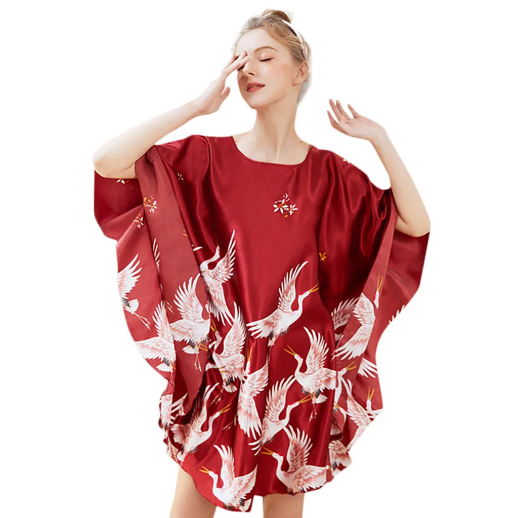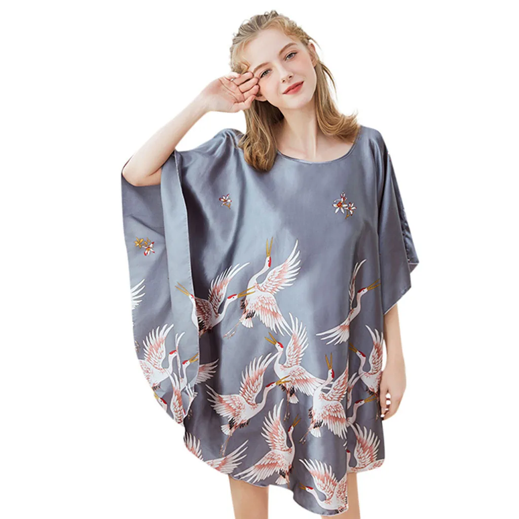 Женское Белье для сна с поясом и принтом, атласная ночная рубашка, нижнее белье