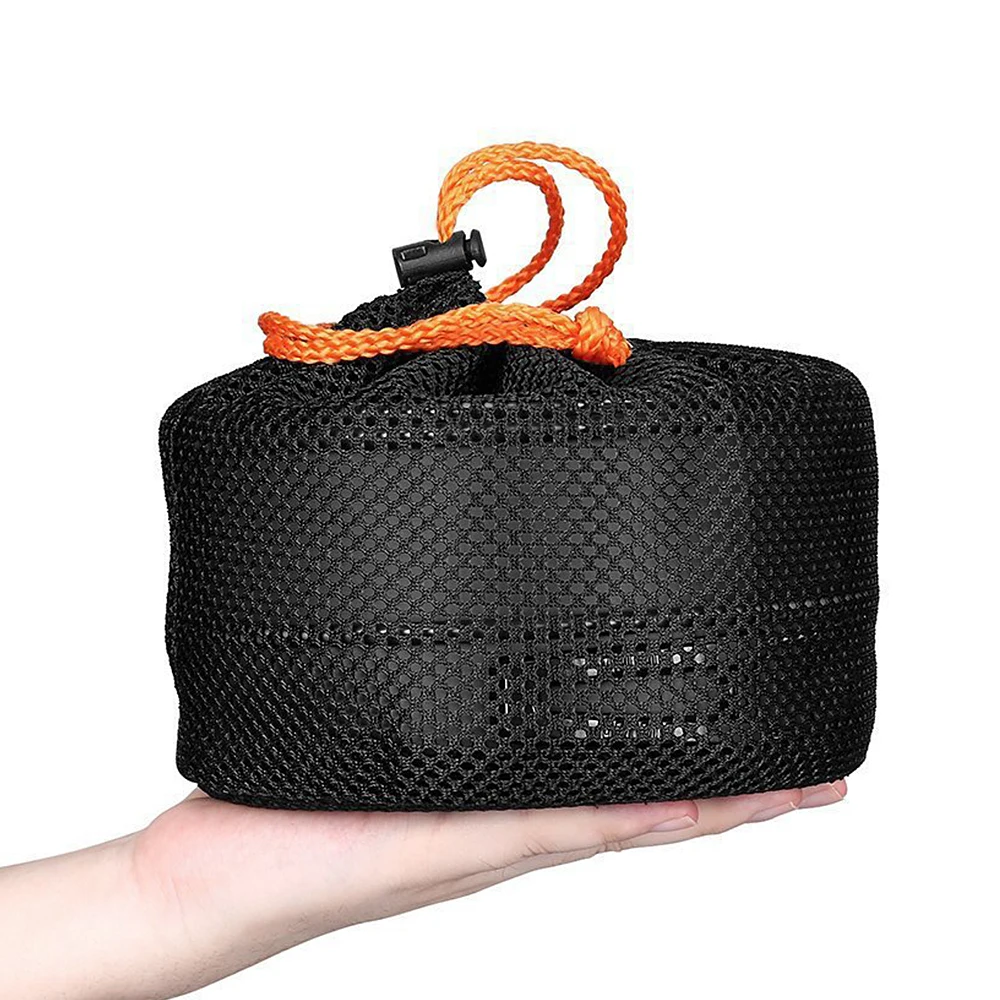 Поставляется с сетчатым мешком для хранения посуды, очень удобным для походов на открытом воздухе, кемпинга, пикника и альпинизма.