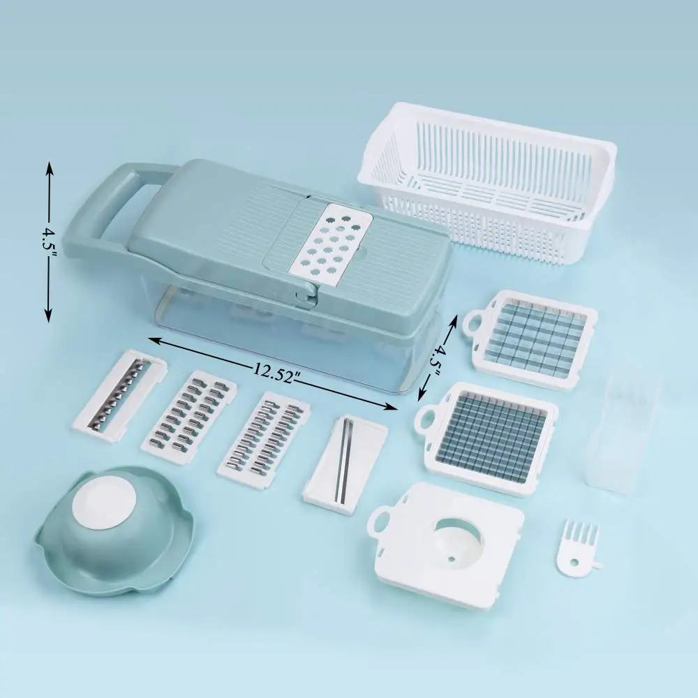【Простота в использовании и очистке 】-быстро собирает овощерезку/овощерезку и готов к использованию. Просто положите в лезвие по вашему выбору, а затем приготовьтесь нарезать. Наш кухонный комбайн включает дополнительную крышку для хранения, чтобы удобно хранить продукты питания, сохраняя при этом оригинальный аромат и свежесть. Все 21 деталь тщательно упакованы с четко написанными инструкциями для наилучшей практики ухода и использования