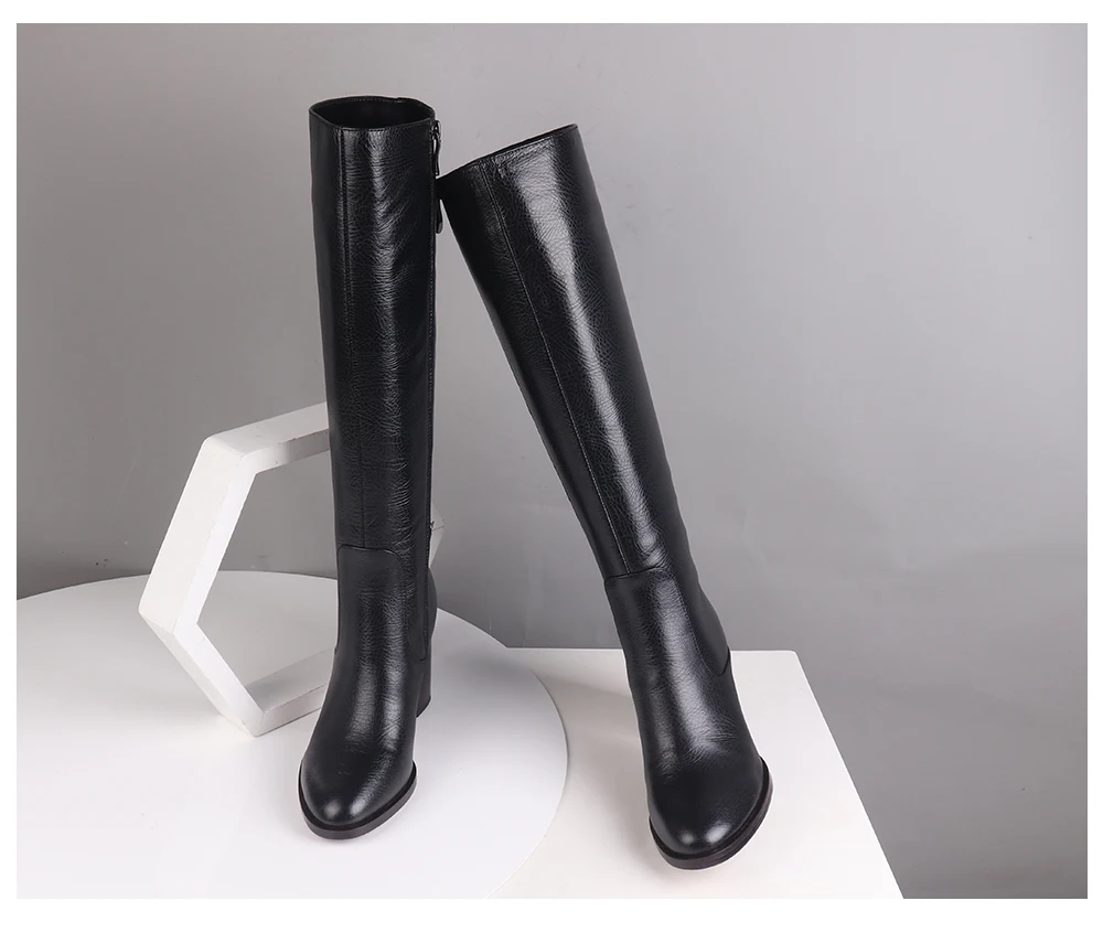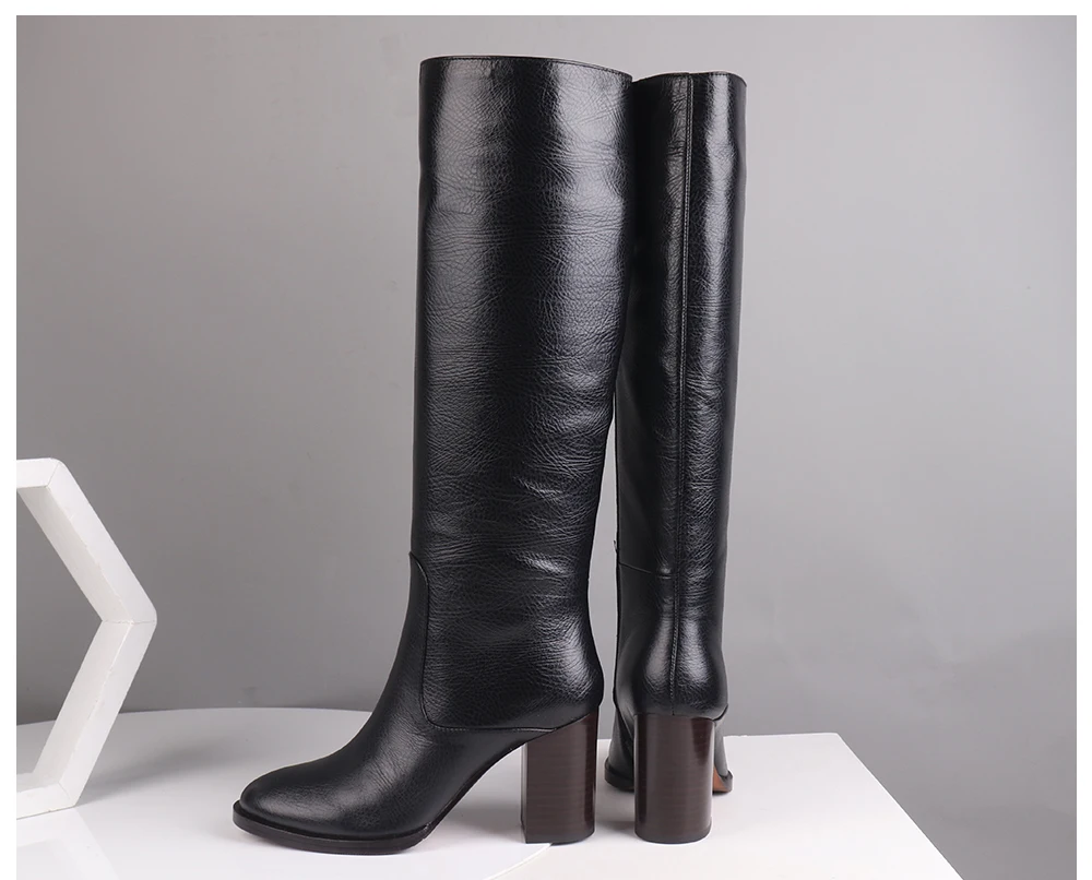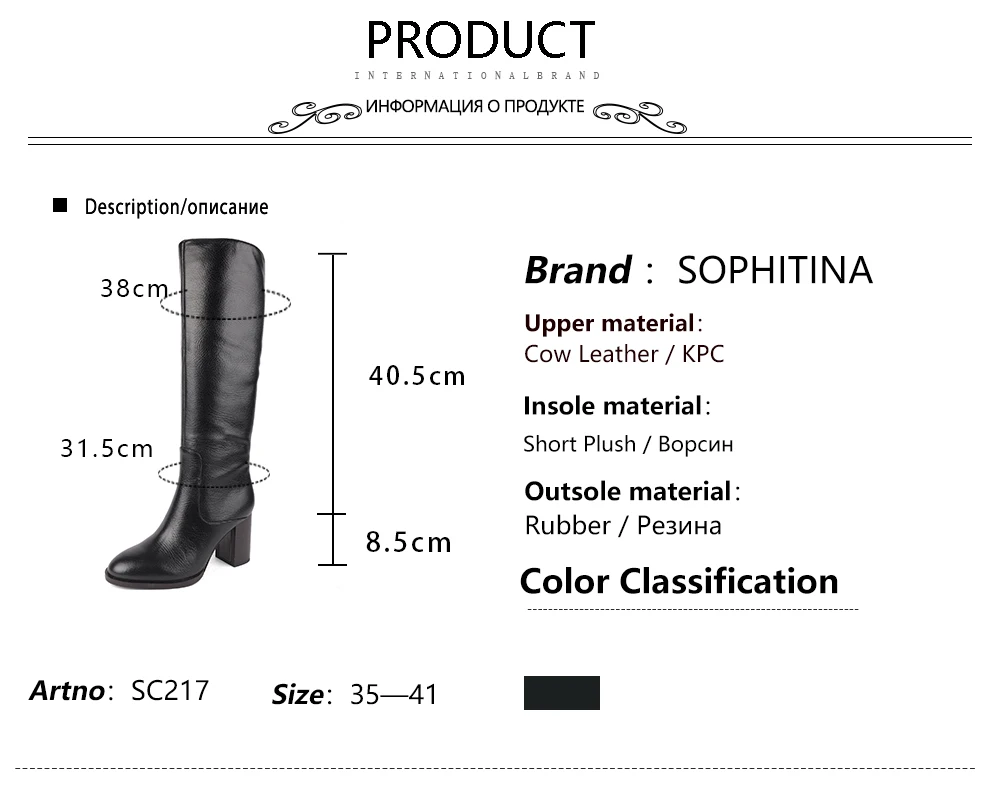 SOPHITINA/однотонные модные ботинки; Удобная теплая обувь из натуральной кожи с круглым носком на квадратном каблуке; Новинка; Женские сапоги до колена; SC217