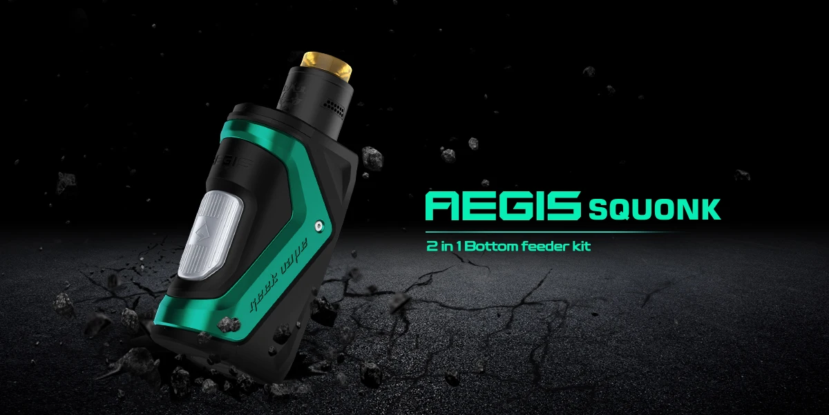 Стартовый комплект Geekvape Aegis Squonk 100 Вт состоит из Aegis Squonk Mod и Tengu RDA. Geekvape Aegis Squonk, 2 в 1 squonk одиночный батарейный мод, оснащен новейшим чипсетом AS-100 с водонепроницаемым, пылезащитным, ударопрочным и мультизащитой IP67. Geekvape Aegis Squonk Kit работает от одной батареи 18650 и может работать до максимальной мощности 100 Вт.
