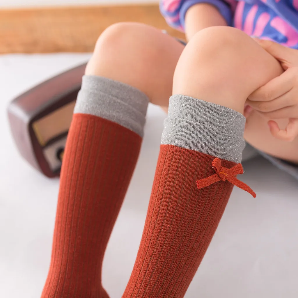 Детские однотонные Нескользящие вязаные длинные носки для маленьких мальчиков и девочек гольфы