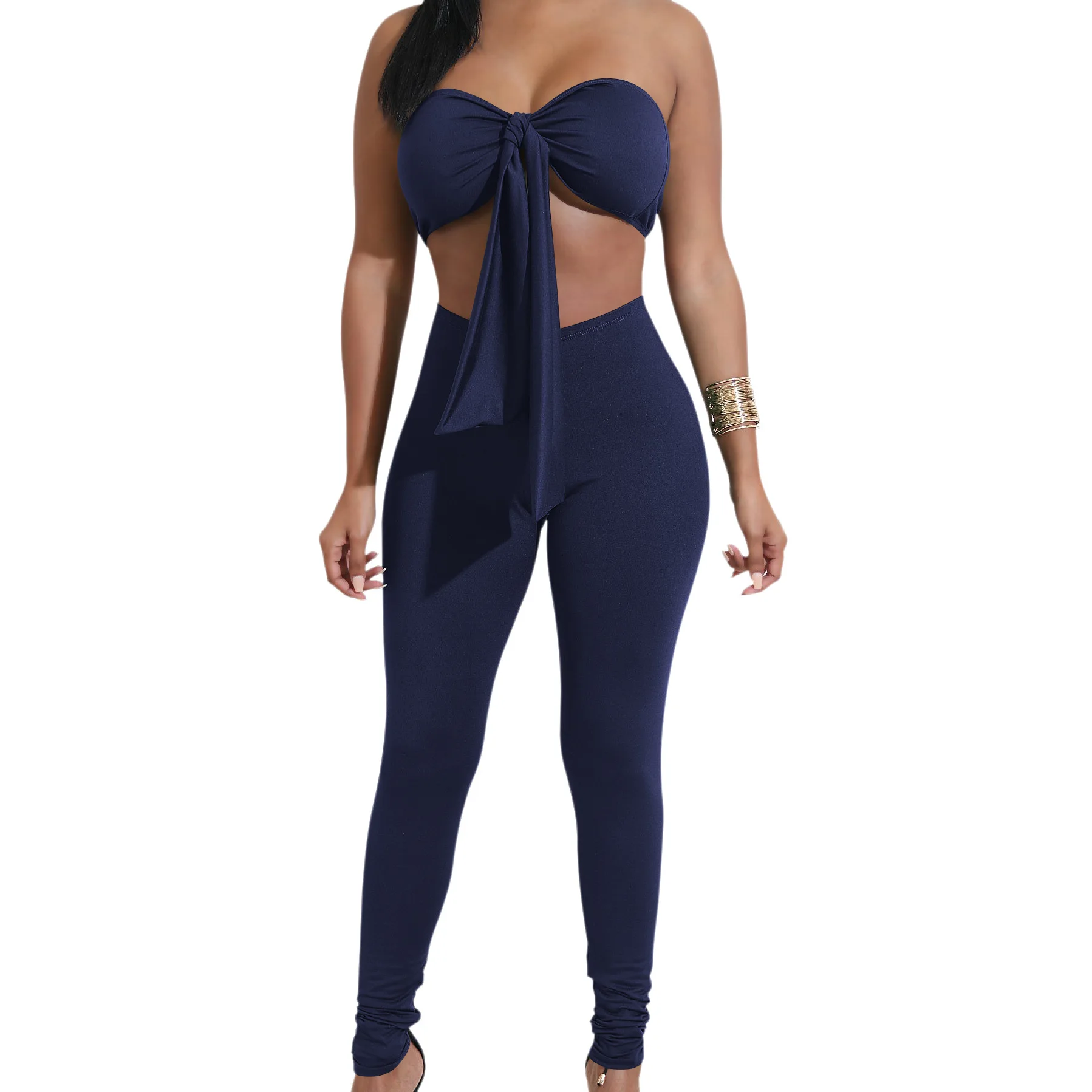 2019 женские комплекты из двух предметов, сексуальные вечерние Клубные костюмы, короткий Топ без бретелек с галстуком и тонкие штаны, комплект из 2 предметов, наряды DW678 <