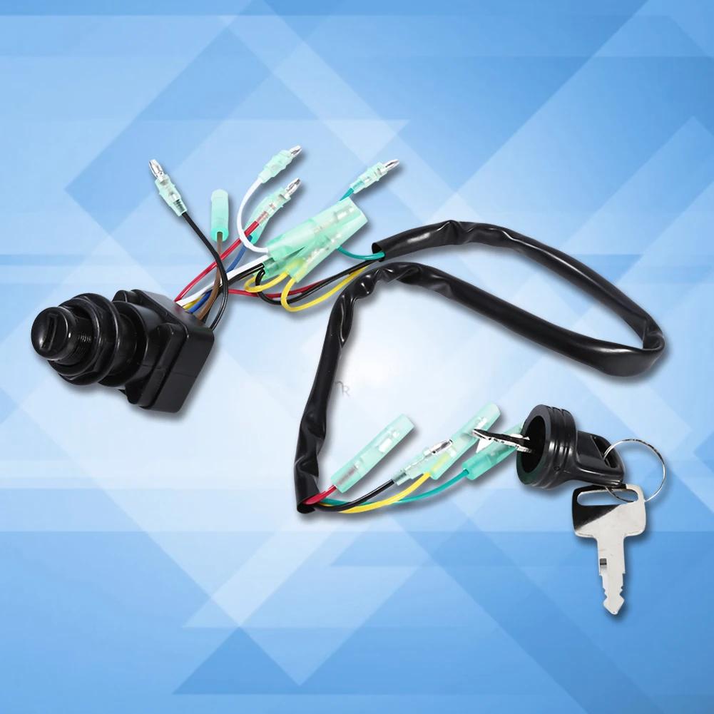 Это послепродажный контрольный блок зажигания или главный переключатель в сборе для подвесных моторов Yamaha. Поставляется с соответствующим переключателем и клавишами, переключатель зажигания очень удобен для использования и установки.