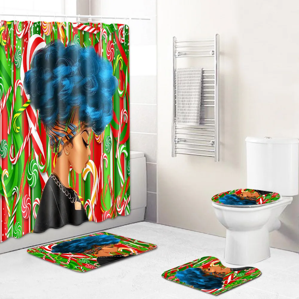Zeegle, 4 шт., Рождественская занавеска для ванной, водонепроницаемая занавеска для душа, моющийся коврик для ванной, набор, впитывающий коврик для ног, Противоскользящий коврик для ванной USD 29,07/Шт/Лот 1