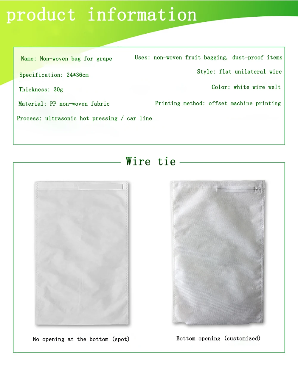 Специальные мешки с эко-пленкой отличаются отличной защитой от дождя, воздухопроницаемостью, защитой от вредителей, защитой от птиц, антибактериальным, полупрозрачным и другими характеристиками, и они изготовлены из биоразлагаемых экологически чистых материалов. Исследования показывают, что он может эффективно улучшить среду микробного роста виноградных шипов, значительно улучшая растворимые твердые вещества ягод. Антоцианины и витамин С улучшают комплексное качество винограда, повышают яркость и окраску виноградных фруктов и уменьшают такие болезни, как шелушение винограда, антракноз, белая гниль и серая форма, сокращение производства винограда. Эффект продукта 1. Борьба с вредителями, предотвращение птиц, воздухопроницаемость, водонепроницаемость, защита от мороза 2. Равномерно пигментированный и приятный на вкус 3. Содержание сахара в фруктах увеличивается на 3-5 градусов 4. Срок зрелости составляет около 15 дней, что повышает цену на фрукты на 20% на рынке. Характеристики: Материал: нетканый материал (прибл.) : 240x35 0 мм/200x30 0 мм/300x35 0 посылка: 50 шт.