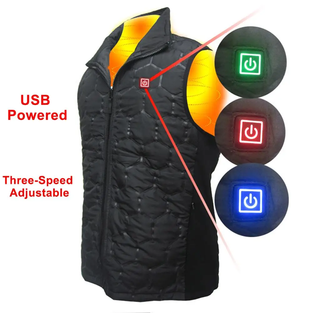 Теплый жилет с электрическим подогревом с тремя шестернями и регулируемой температурой для зимы на открытом воздухе4
