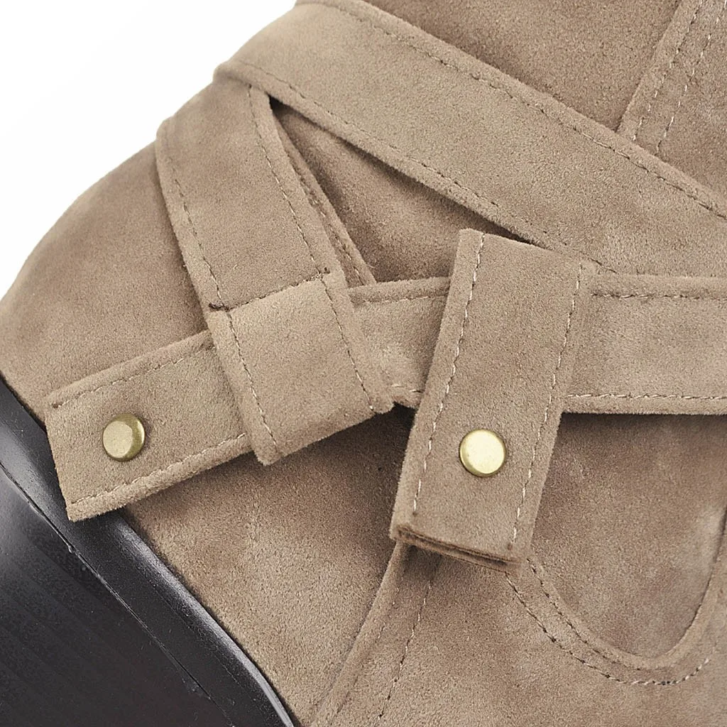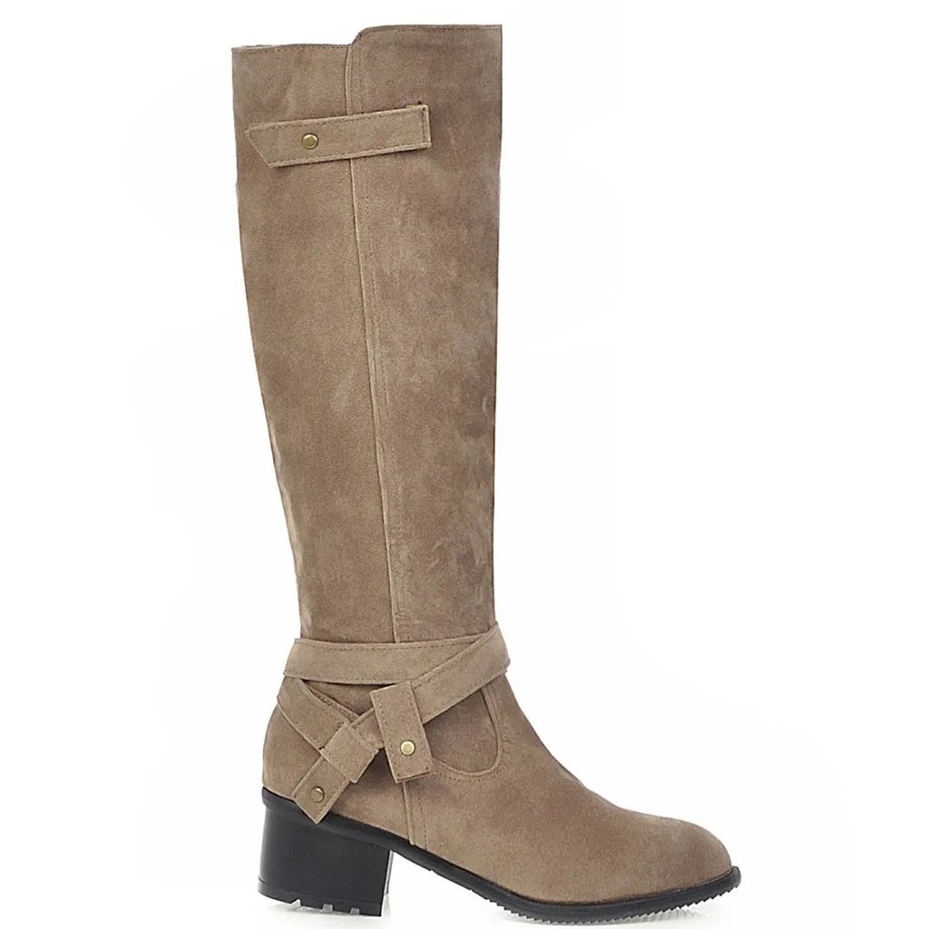 Женские замшевые ботинки; ботинки с круглым носком; большие размеры; обувь с высоким голенищем