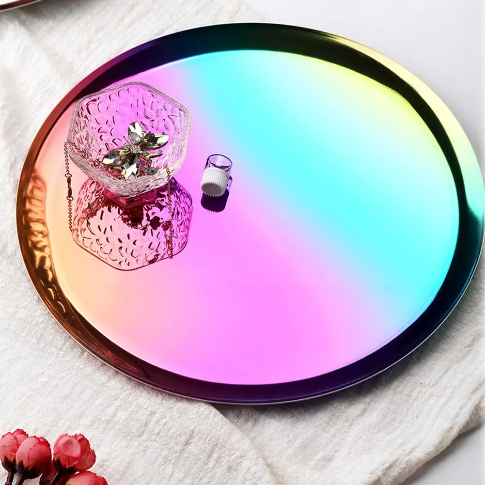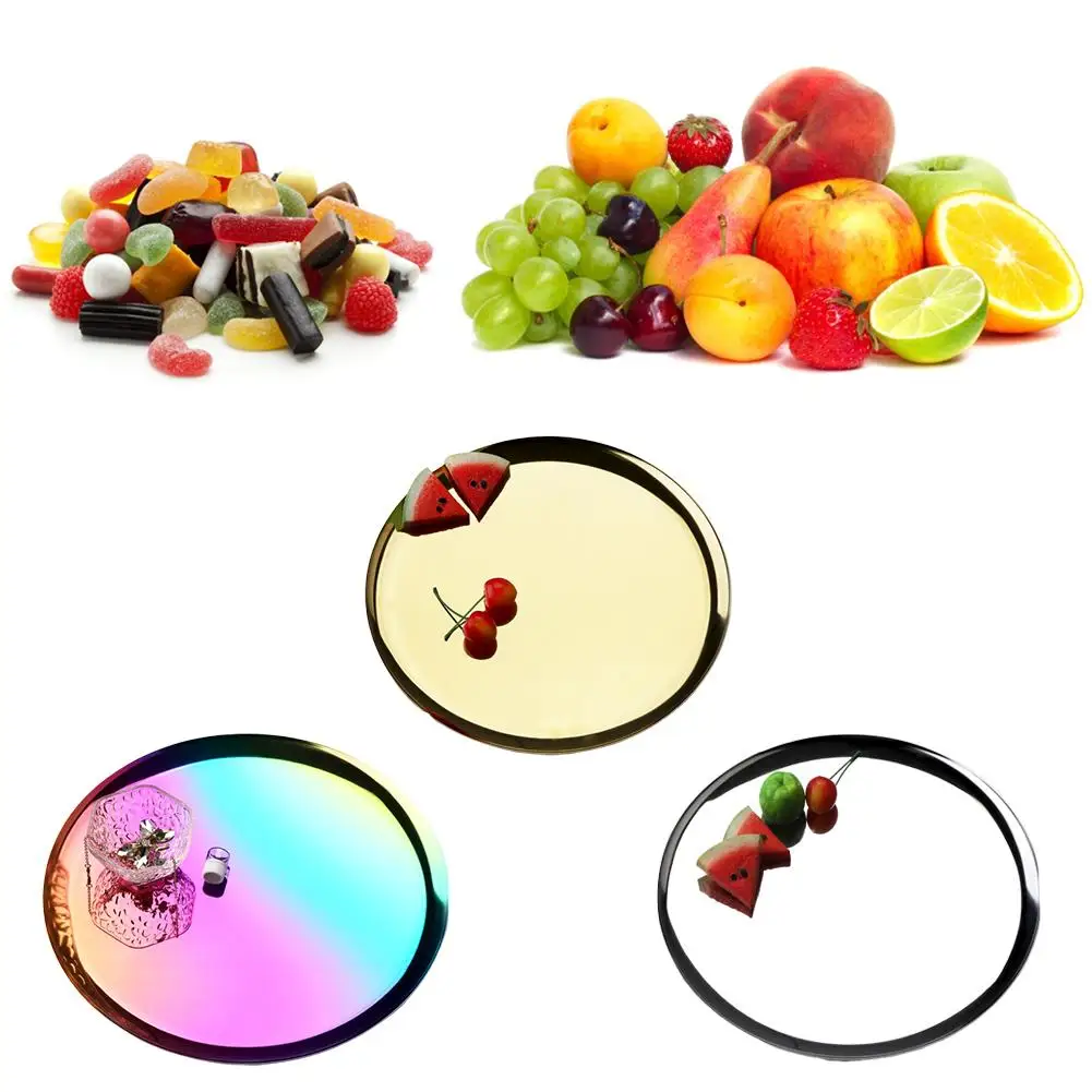 Новинка 2019 цветной металлический лоток для хранения Золотой Круглый точечный фруктовый тарелка мелкие предметы ювелирный дисплей лоток зеркальные лотки декоративное блюдо