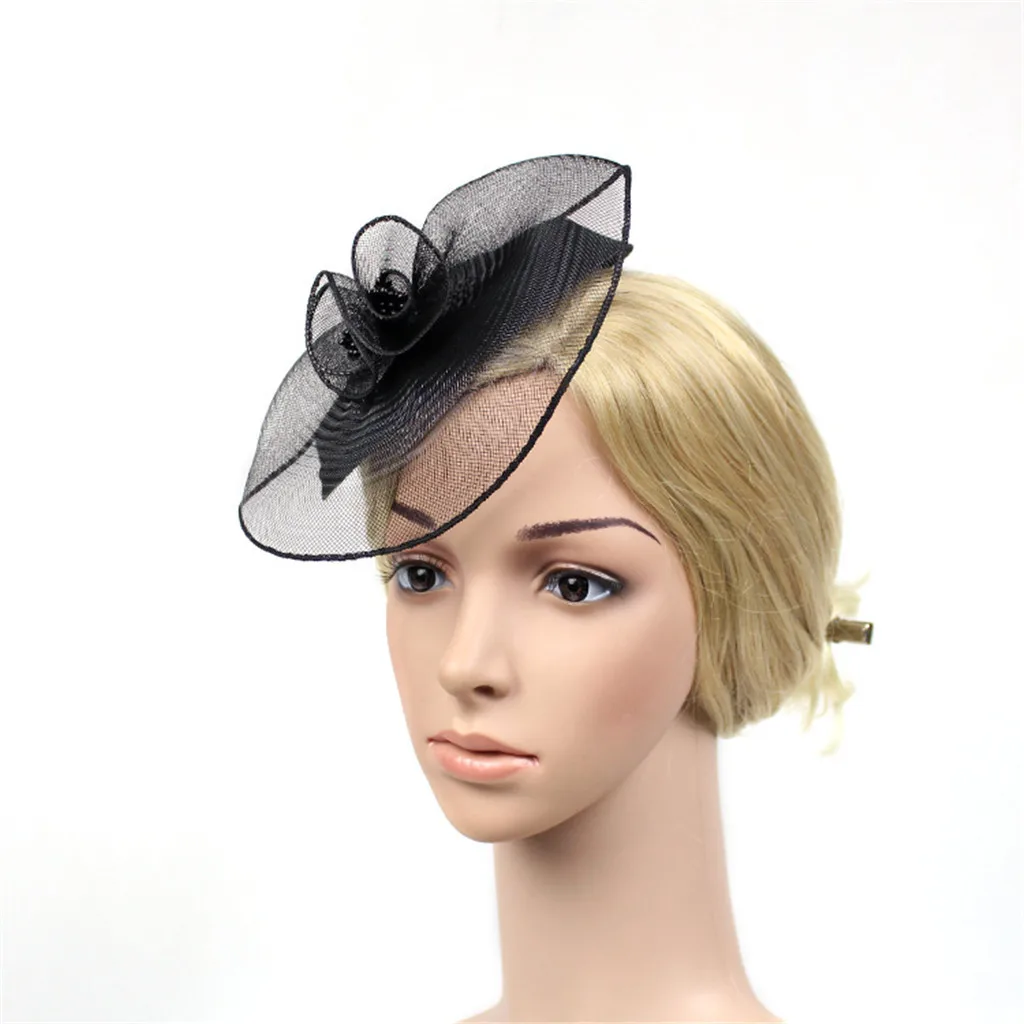 2. Деликатная ручная работа- Милая шляпка-Вуалетка, смешанные детали, включая перья, плетение и скульптурный дизайн цветка.