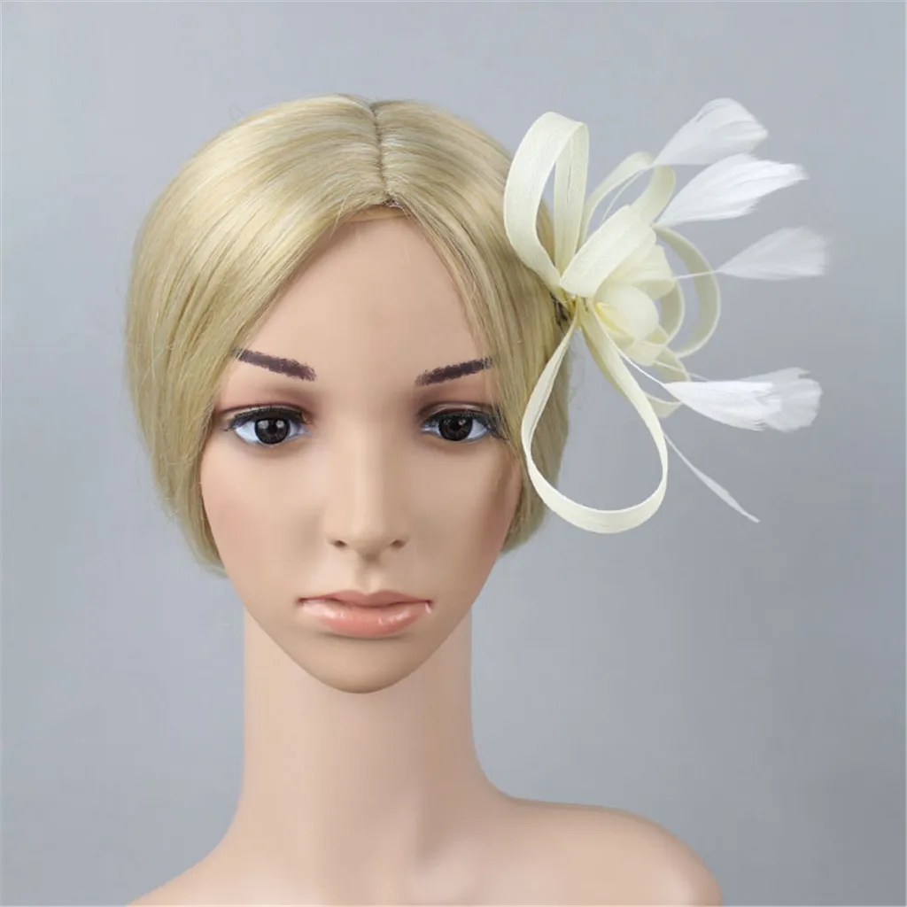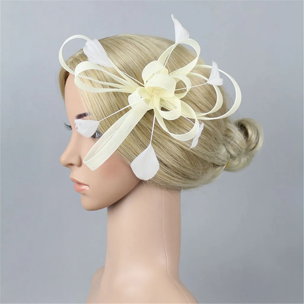 2. Деликатная ручная работа- Милая шляпка-Вуалетка, смешанные детали, включая перья, плетение и скульптурный дизайн цветка.