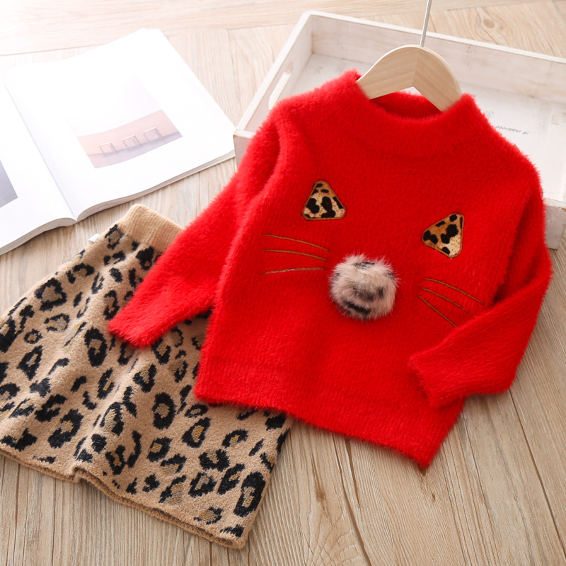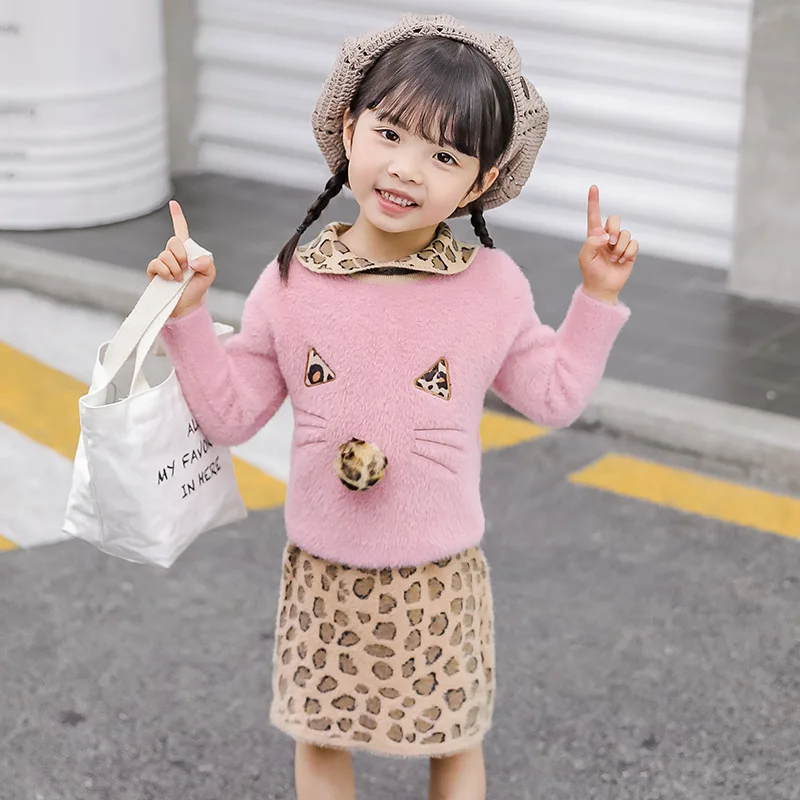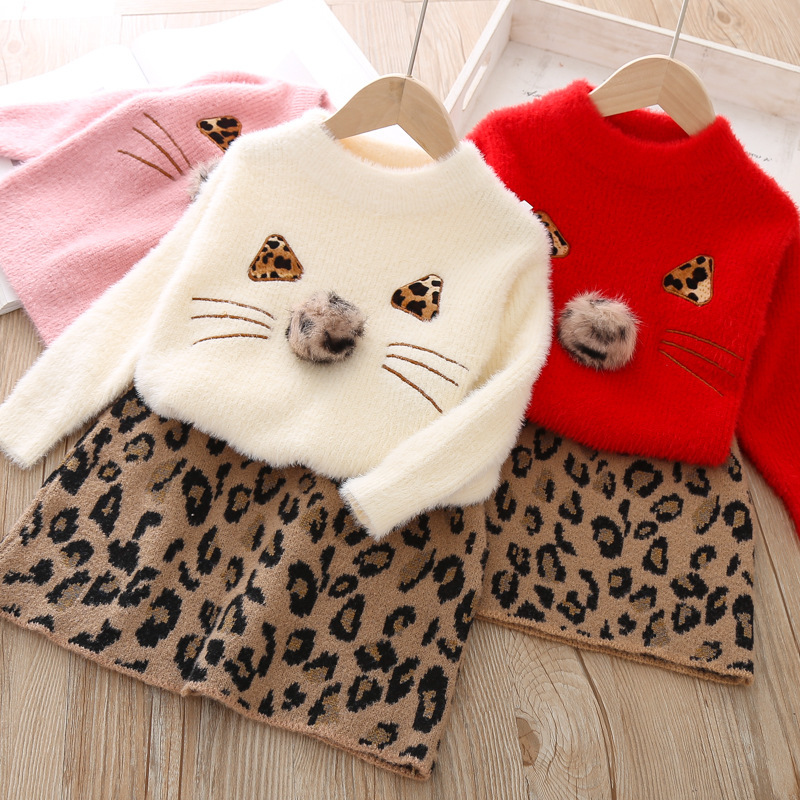 Продукты | Платье для девочек осенне-зимняя детская одежда для девочек свитер с рисунком + леопардовое платье повседневные костюмы из 2 предметов комплекты одежды для девочек |