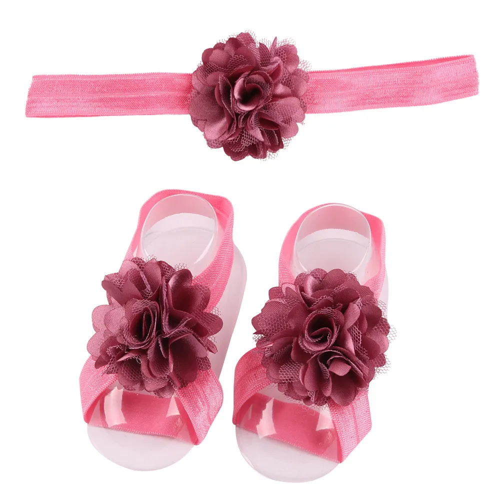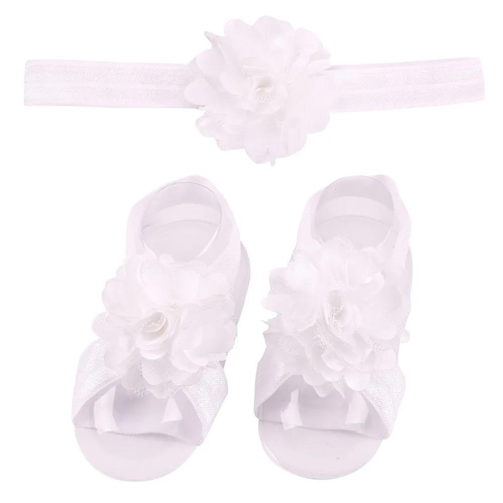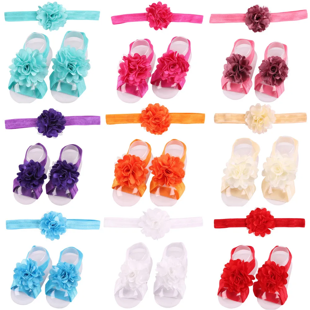 Комплект из 3 предметов, милый комплект для малышей, для девочек, для детей ясельного возраста, в стиле с цветочным принтом повязка для головы и для волос с цветком Сандалеты обувь набор для детей, аксессуары