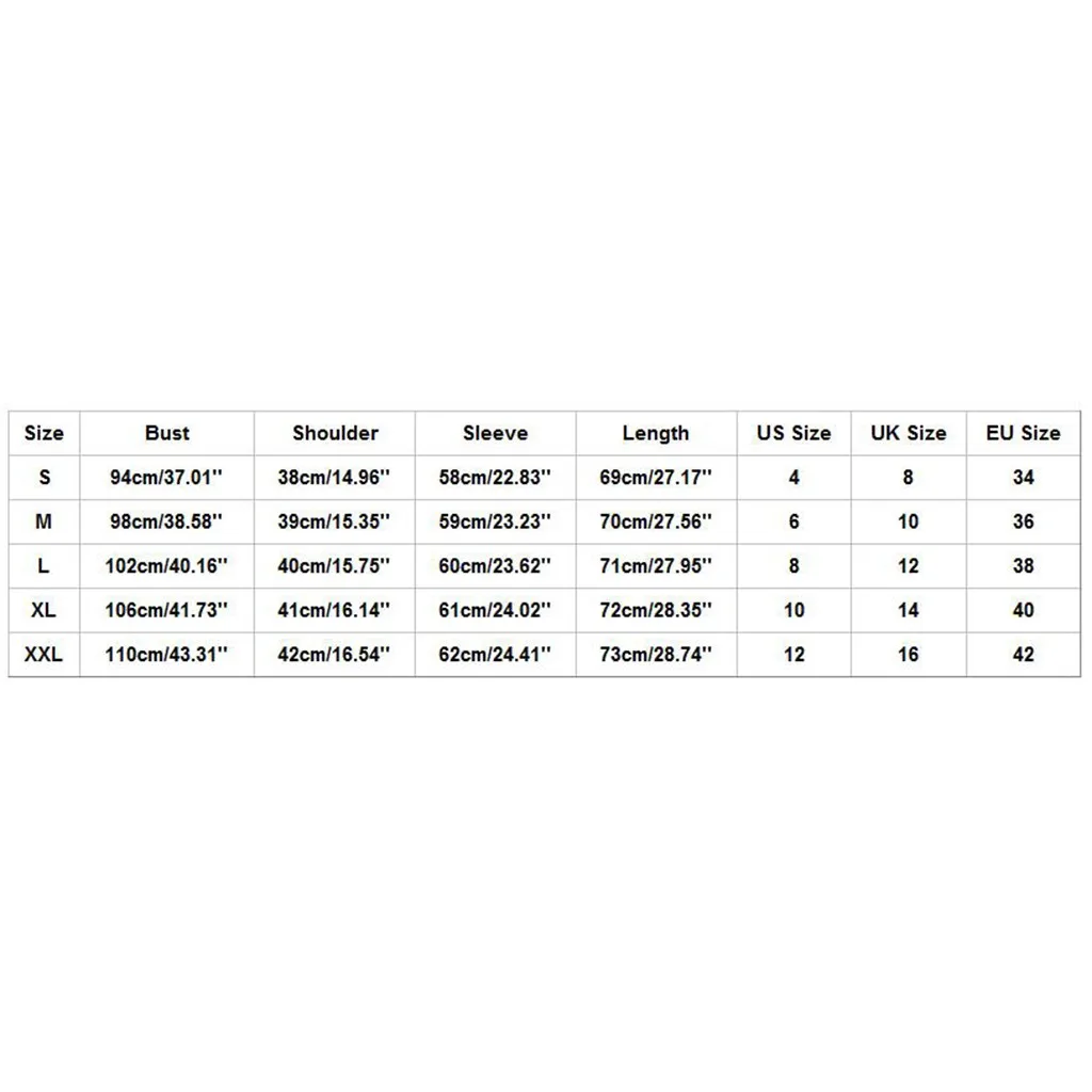 | Размер | Бюст | Плечо | Рукав | Длина | Американский размер | Размер Великобритании | Европейский размер |