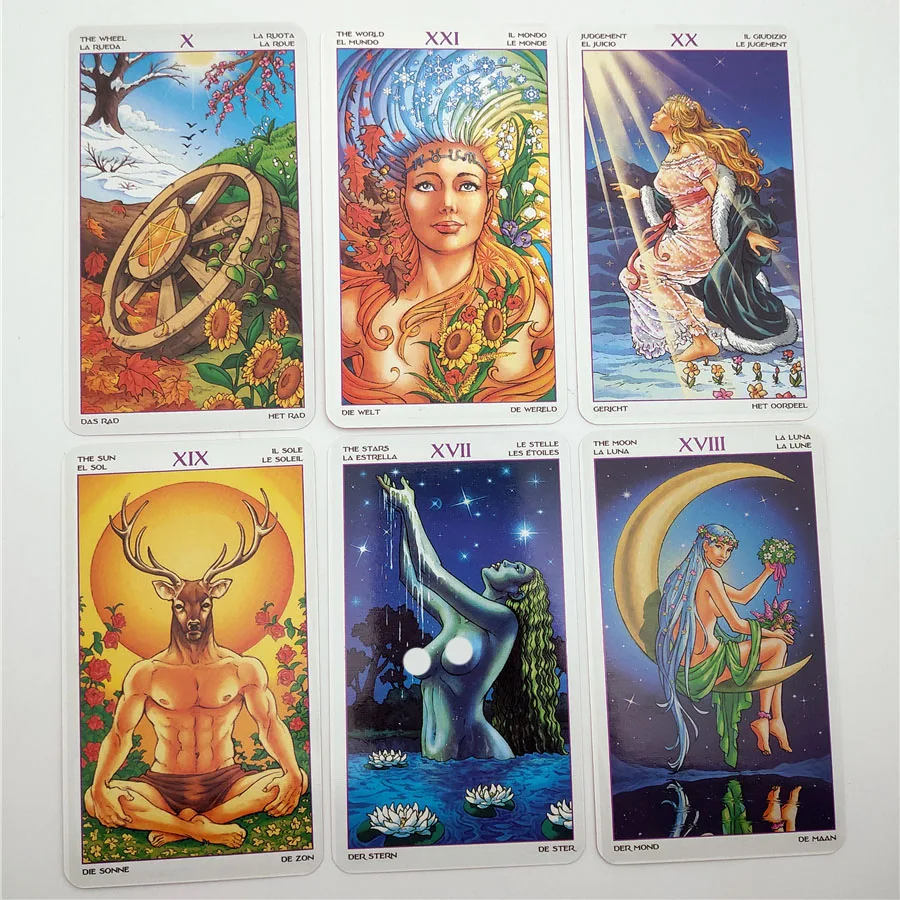 Размер карты: 6*10,3 см язык: английский количество карт: 78 (без инструкции, предоставьте руководство по электронной версии) Упаковка: красочная коробка Транспортировочная упаковка перламутровая мембранная пузырчатая сумка, анти-ритм и водонепроницаемый, может хорошо защитить карты. В комплект входит: 1 комплект x карт 1x инструкция Буклет Примечание: Если вы хотите руководство по эксплуатации на английском языке, вы можете оставить свой адрес электронной почты, и мы отправим Электронное руководство на ваш адрес электронной почты.