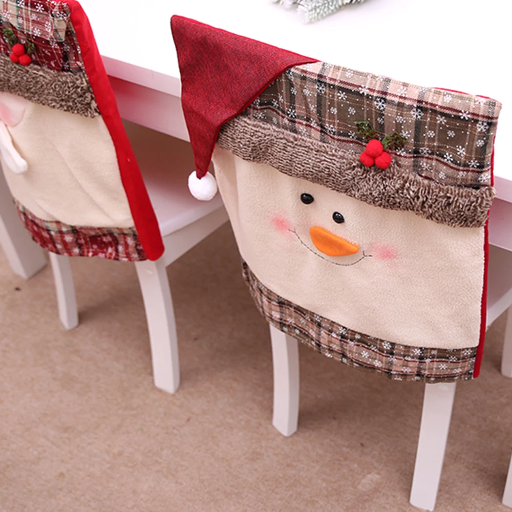 Рождественские чехлы на стулья, защитные чехлы на стулья для рождественской вечеринки, чехлы на сиденья с Санта Клаусом, рождественские чехлы на стулья, украшения