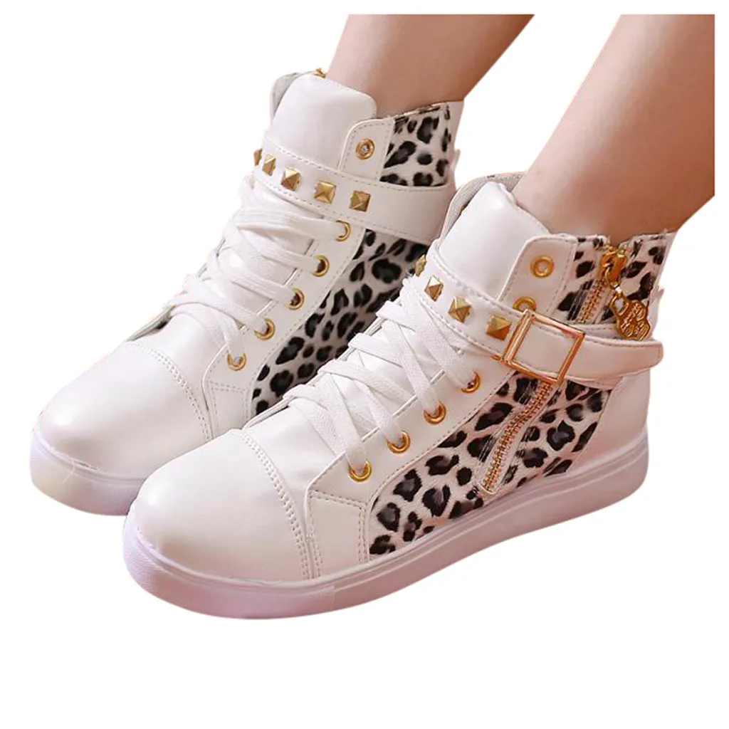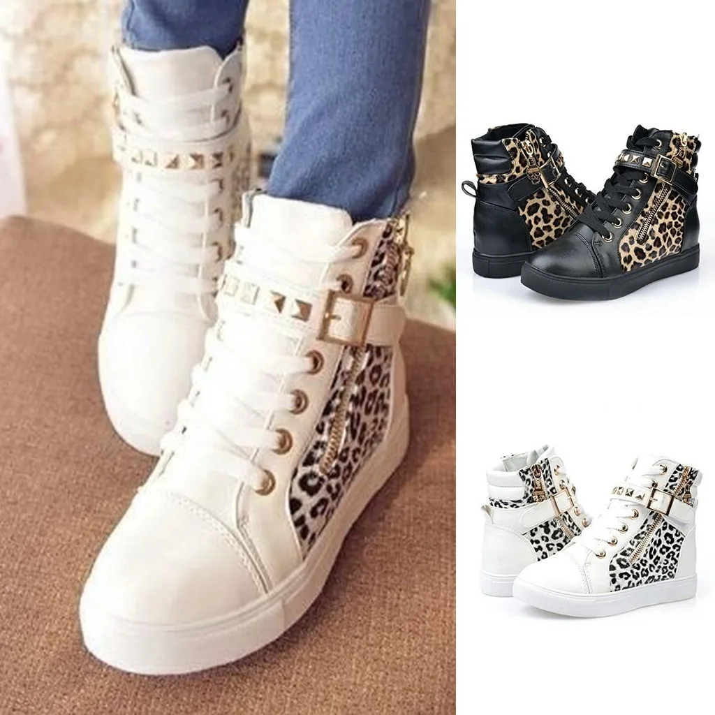 Женская модная повседневная спортивная обувь на молнии с леопардовым принтом