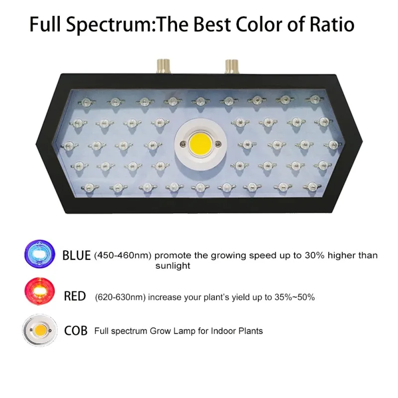 Название продукта: длинный шестигранный растительный светильник Размер: 18*13*5 см Материал корпуса: железо, акриловая пластина Цвет: черный Светильник источник света: светодиодный Напряжение: 85-265 в Мощность: 1000 Вт Синий бисер: 450-460нм 6 капсул Красные бусины: 620-630nm 36 капсул COB: 380 ~ 800 нм, весь спектр содержит 100 бусин (красный, синий, белый, инфракрасный, ультрафиолетовый и т. д.) Количество светодиодов: 42 + 1 COB Стандарт Вилки: штепсельная вилка европейского стандарта, штепсельная вилка американского стандарта, штепсельная вилка австралийского стандарта, штепсельная вилка британского стандарта (четыре варианта) Наши светодиодный рост светильник s позволяют ваши заводы, чтобы преуспеть в ночное время или в случае отсутствия солнца светильник с использованием высокого качества, не вредит экологии материалы и high-end светодиодный светильник источники. Он имеет преимущества ультра-яркости, низкого тепла и низкого энергопотребления. Используется для садоводства, семейного балкона рассады/выращивания, посадки теплиц и т. д. Характеристика: 1. Охрана окружающей среды, низкое энергопотребление, низкое потребеление энергии, высокая светоотдача, Сверхяркие рекламные щиты, и срок службы более 50000 часов. 2. Площадь освещения составляет около 2 квадратных метров, поэтому ваши растения будут наслаждаться полным освещением и хорошо расти. 3. Функция регулировки, подходит для всего цикла роста растений. Экономьте время и усилия интенсивности освещения лампы и спектральных требований, которые наиболее подходят для роста растений, не регулируя положение лампы. 4. Вы можете повесить растущие огни на растения, включая металлические висящие провода, которые очень просты и удобны в использовании. 5, светодиодный двойной чип (10 Вт), яркость чипа COB, более эффективная работа, светодиодный свет для роста может сделать ваши растения быстро растут, что значительно экономит ваше время, научный дизайн, для поддержания баланса выхода и покрытия par / lumen. 6. Используя наш светильник для роста растений, можно улучшить фотосинтез растений, помочь растениям поглощать питательные вещества, особенно некоторые микроэлементы, сократить цикл роста, повысить эффективность, лучшее качество. 7. Мощная система охлаждения: есть один вентилятор охлаждения в каждом светодиодный светильник, чтобы держать светильник в прохладе и тишине, и время работы больше. 8. Энергосбережение: энергопотребление около 110 Вт, экономия денег, чем HPS / MH огни! Навыки: Настройка времени освещения: период рассады 14-18 часов, период роста: 12-14 часов; Период цветения: 9-12 часов. Фруктовый период: 7-8 часов Рекомендуемое расстояние от растения: 16 дюймов Светильник с интенсивностью: 250PAR-seed период, ручка синий + COB =(60-80) ручка красный = 0 450-600PAR -- период роста, синяя ручка + COB =(50-80) Красная ручка = 60-80 700-800PAR-период цветения, ручка синий + COB =(80-100) ручка красный = 80-100 400PAR-за последние 3 недели, ручка синяя + COB =(40-60) ручка красная = 60-80 Предупреждение: Не используйте лампу в капельном или влажном месте. Вода и электричество могут быть опасной смесью. Рабочая среда составляет-20 ~ 40 °C, а относительная влажность-45 ~ 90%. Чтобы защитить светильник, выключите питание, когда есть светильник ning strike. Не трогайте и не Двигайте во время работы лампы. Посылка включает в себя: 1 * растительный светильник
