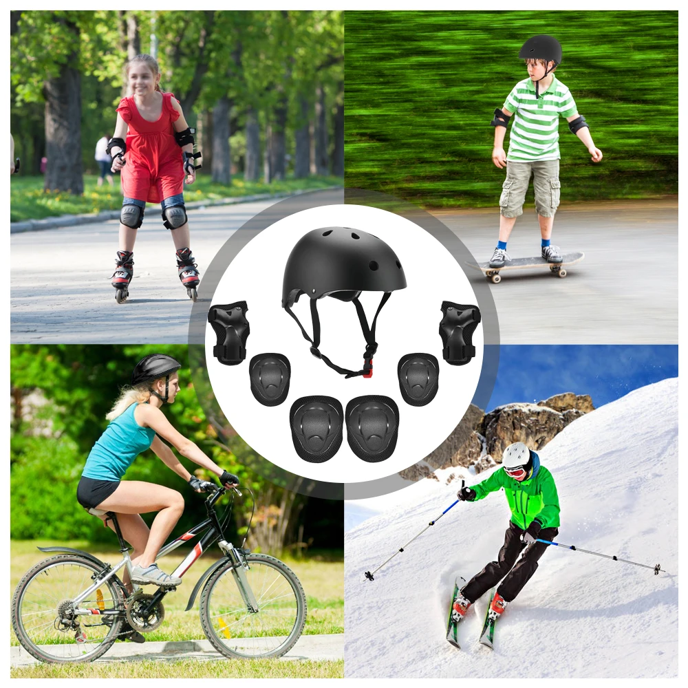 Комплект защитного снаряжения 7 в 1-Детский велосипедный шлем, два наколенника, налокотники и накладки на запястья, которые обеспечивают вашим детям всестороннюю защиту во время занятий спортом.
