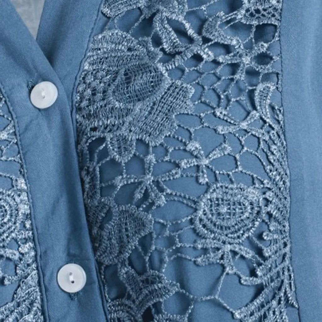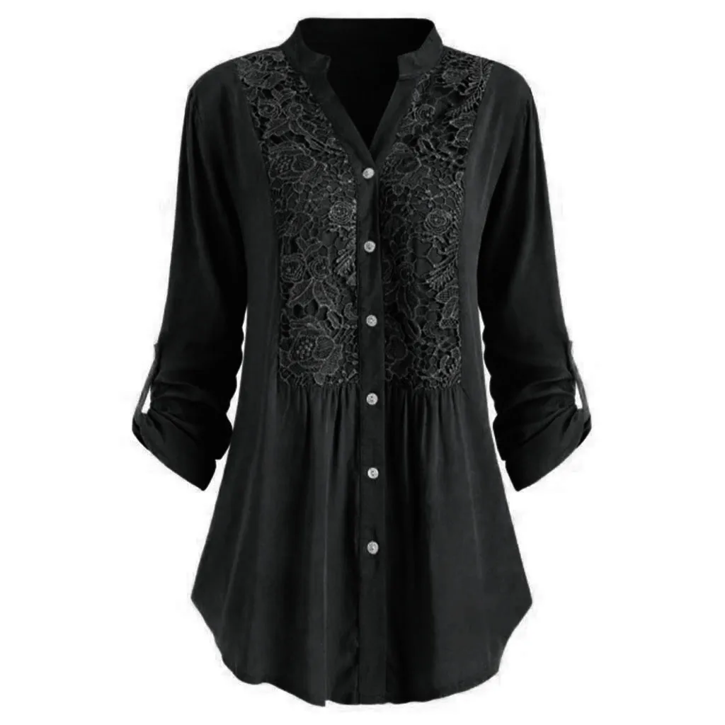 Женская Кружевная блуза на пуговицах, с v-образным вырезом и длинным рукавом, большие размеры