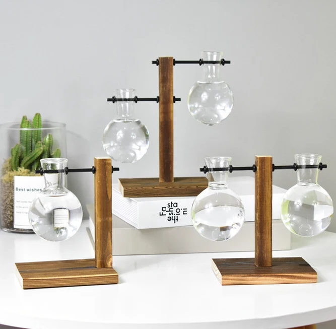 Настольная лампа стеклянная гидропонная ваза цветочный горшок с деревянным