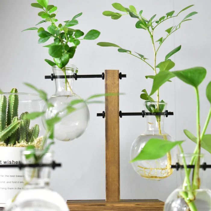 Материал:Гидропонная винтажная ваза изготовлена из твердой древесины, прозрачного стекла; Ваза-стакан легко моется. Они могут освежить ваши глаза и окружающую среду.
