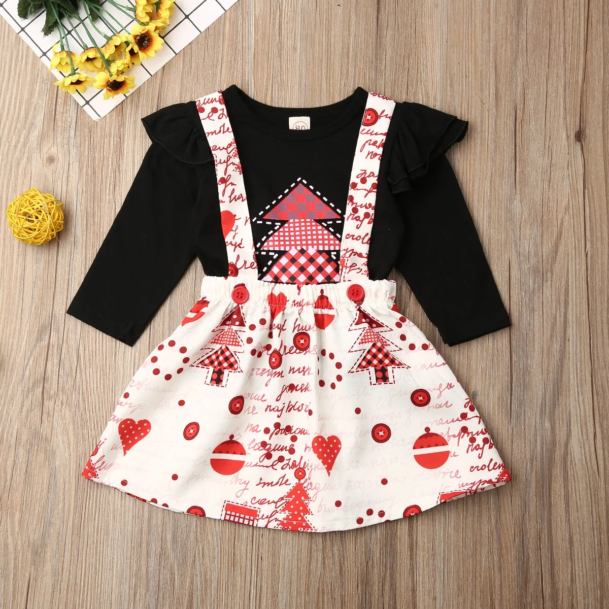 Рождественские топы для маленьких девочек; Комплект с юбкой на бретелях! Высокое качество и абсолютно новый 100% Основной цвет: как на картинке Новинка в моде Материал:Смесь хлопкаОбратите внимание: если ваш ребенок пухленький, мы рекомендуем выбрать больший размер, спасибо. Просим перепроверять размеры детей, рост и полноту по размерной таблице перед покупкой/подачей заявки. Спасибо. Посылка включает в себя:1 Топ + 1 юбка Таблица размеров: